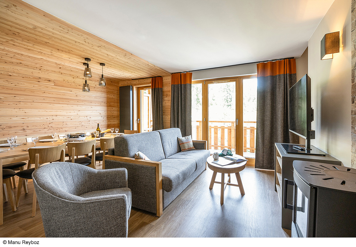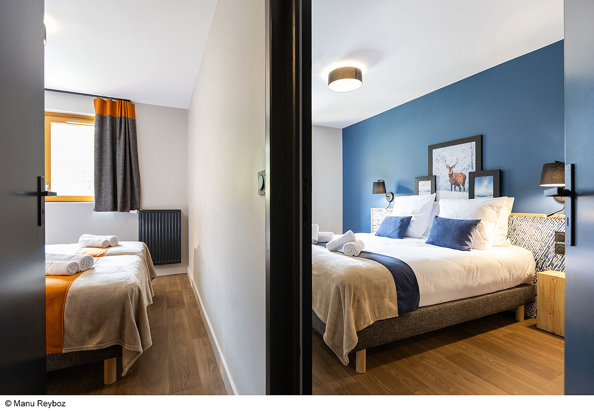 trilo 6 typ D - 49 až 52 m² - 2 spálne s 2 samostatnými lôžkami (možné spojiť na dvojlôžko), obývacia izba s kuchynským kútom a rozkladacím gaučom pre 2 osoby (možný i typ "zásuvka"), 2 až 3x sociálne zariadenie, balkón s výhľadom na hory