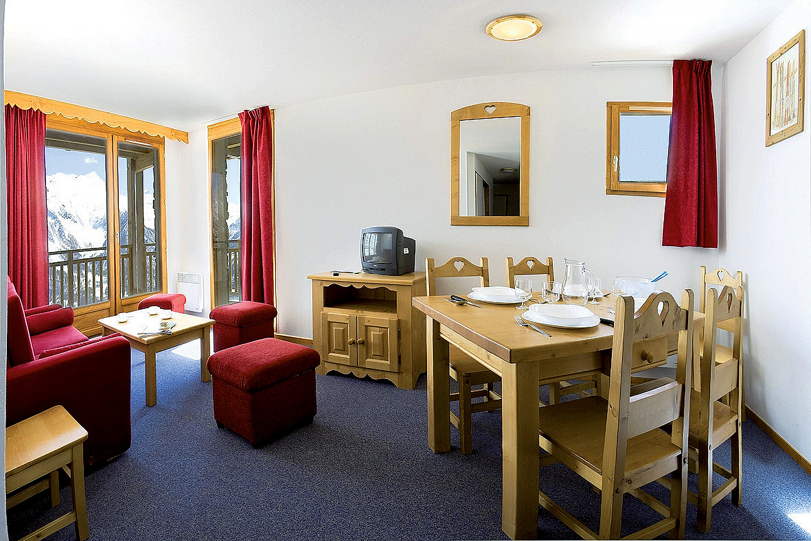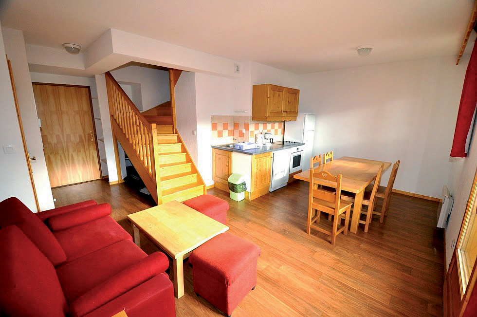 45 m² - 2 spálne s manželskou posteľou alebo 2 samostatnými lôžkami, obývacia izba s kuchynským kútom a rozkladacím gaučom pre 2 osoby (možný aj typ "zásuvka") alebo 2 samostatnými lôžkami, 2x sociálne zariadenie (1x so sprchou, 1x s vaňou, 1 z nich bez WC), balkón alebo terasa