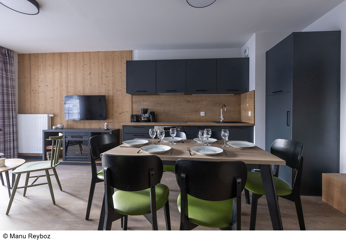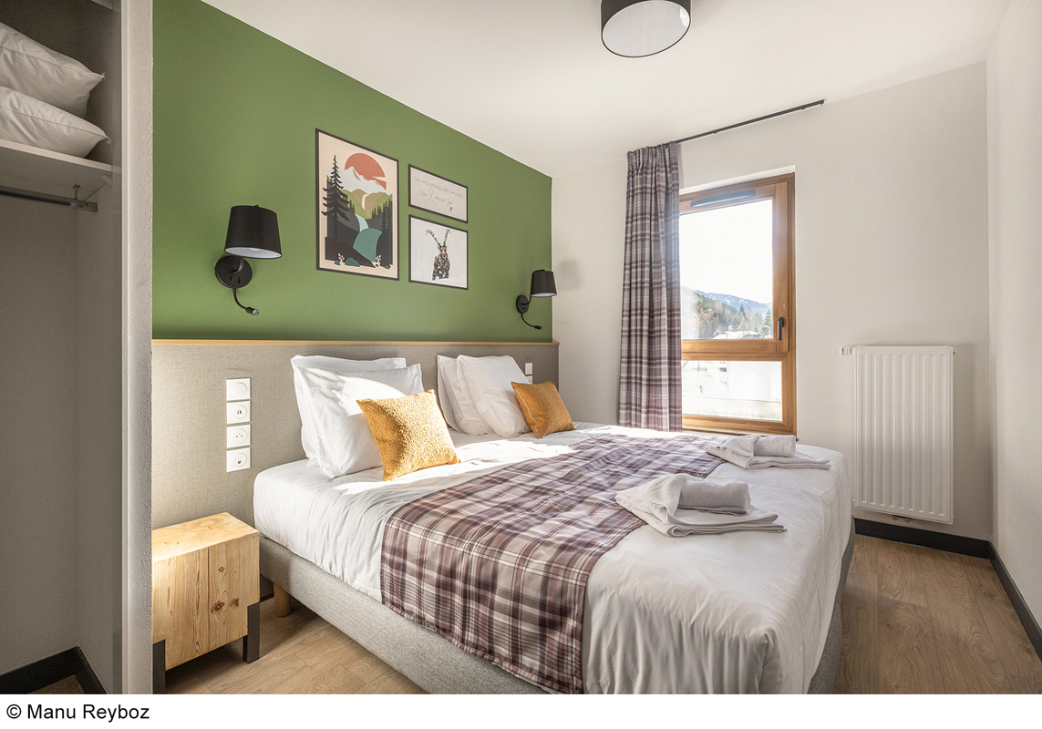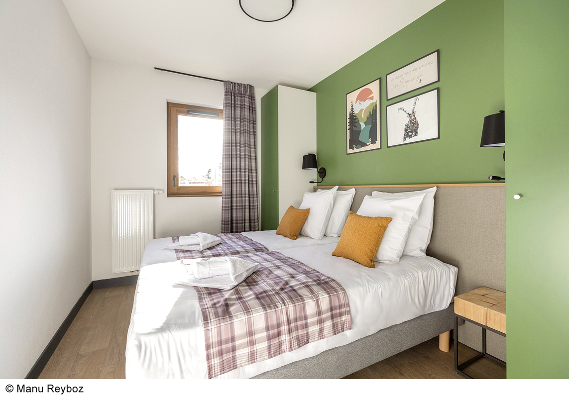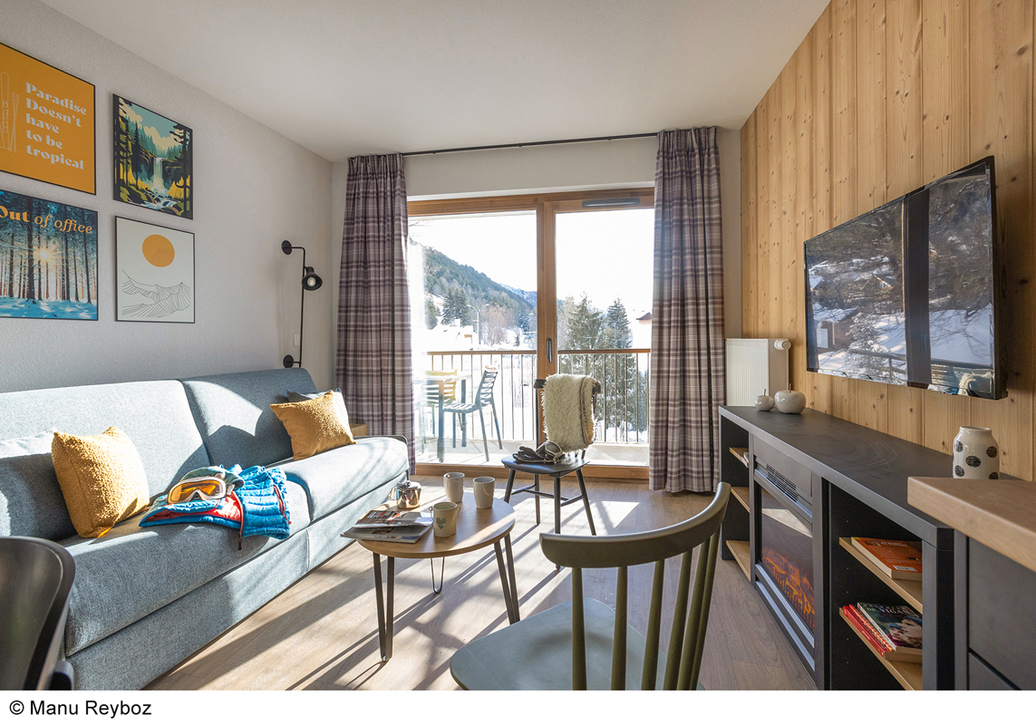 62 m² - 2 spálne s 2 samostatnými lôžkami (možné spojiť na dvojlôžko), 1 spálňa s 2 samostanými lôžkami či poschodovou posteľou, obývacia izba s kuchynským kútom, dekoratívnym krbom a rozkladacím gaučom pre 2 osoby (možný i typ "zásuvka"), 2x sociálne zariadenie (1x so sprchou, 1x s vaňou, 1 z nich bez WC), balkón