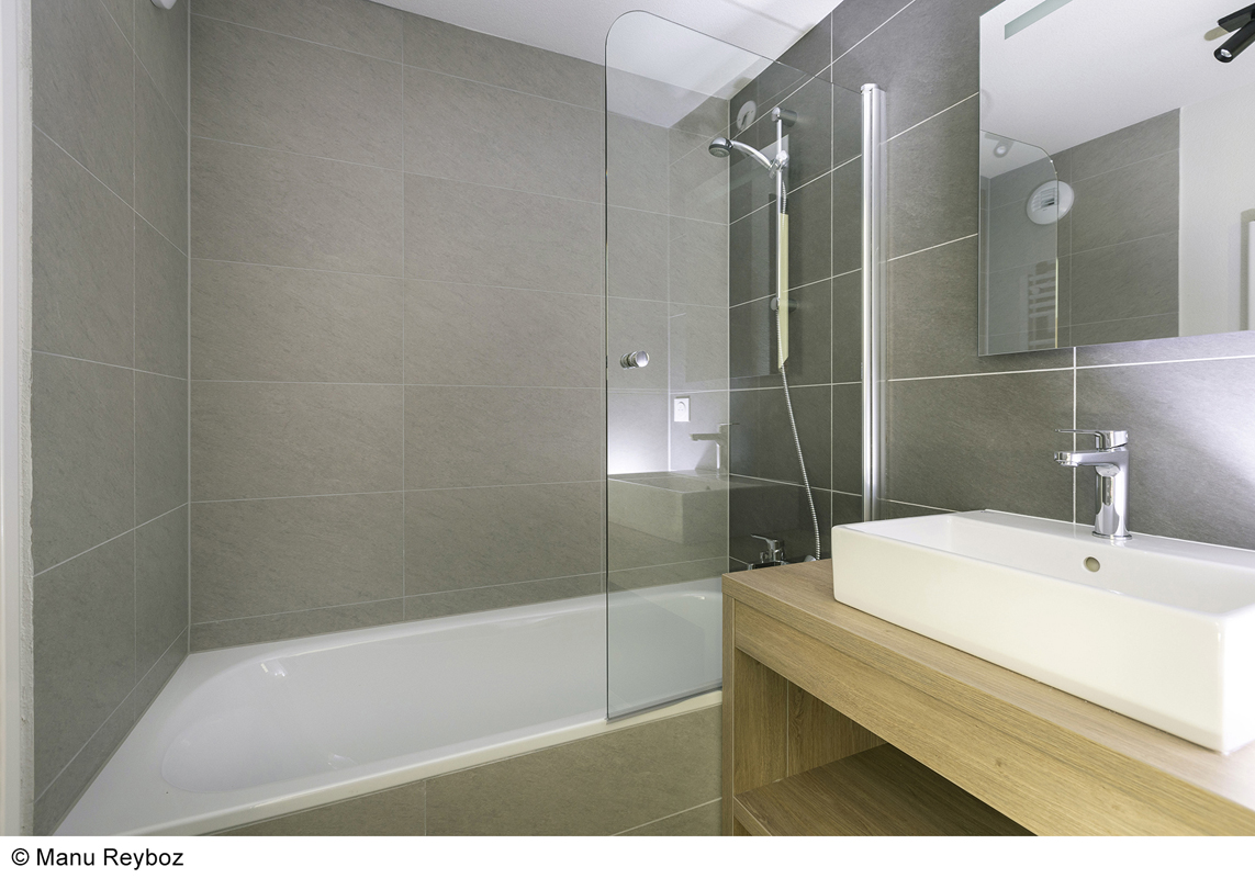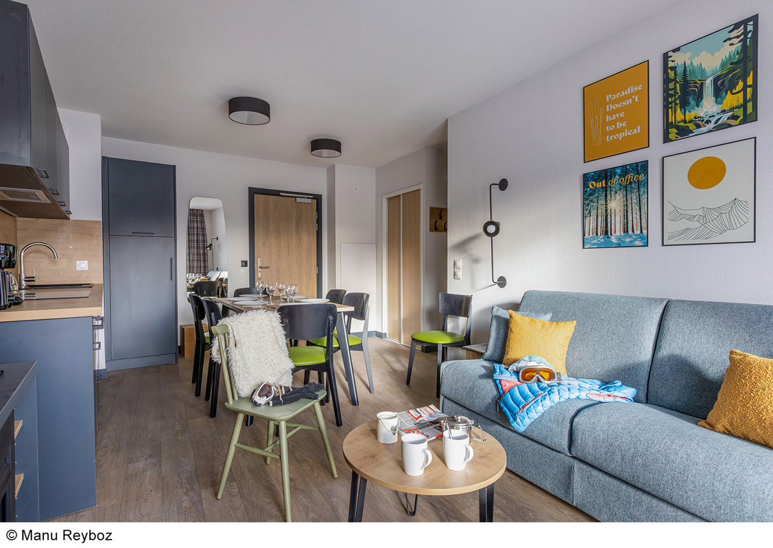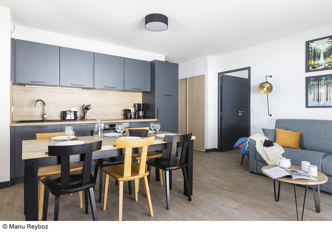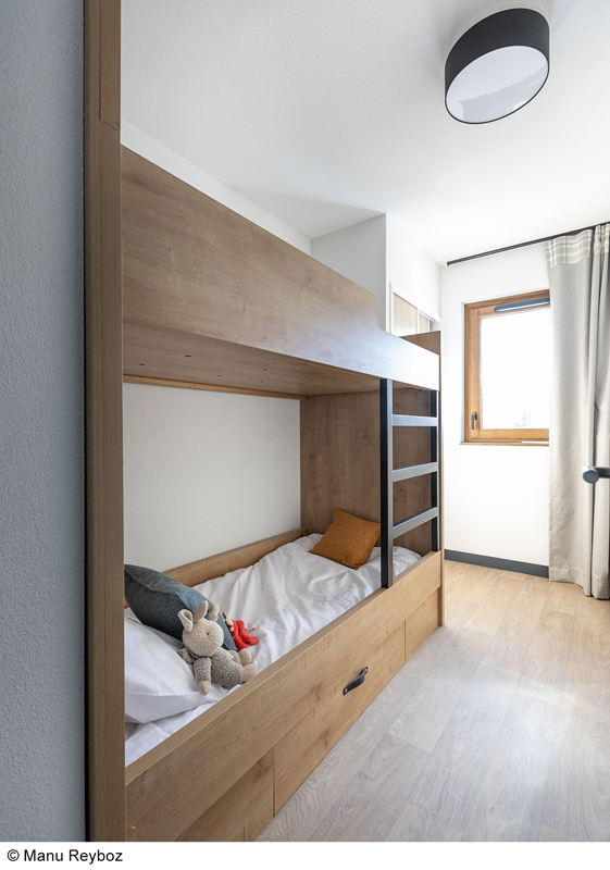 44 m² - 1 spálňa s 2 samostatnými lôžkami (možné spoji´t na dvojlôžko), 1 spálňa s poschodovou posteľou, obývacia izba s kuchynským kútom a rozkladacím gaučom pre 2 osoby (možný i typ "zásuvka"), 2x sociálne zariadenie (1x so sprchou, 1x s vaňou, 1 z nich bez WC), balkón