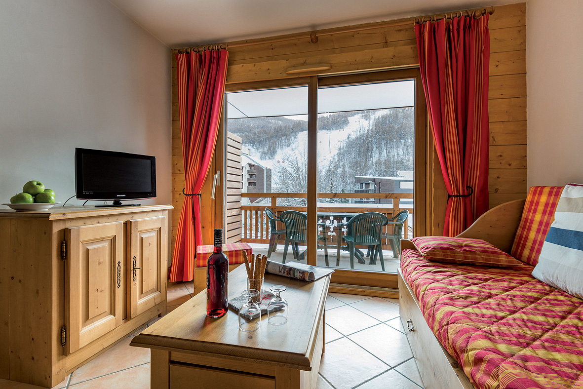 bilo 4 - 33 m² - 1 spálňa s manželskou posteľou alebo 2 samostatnými lôžkami, obývacia izba s kuchynským kútom a rozkladacím gaučom pre 2 osoby (možný aj typ "zásuvka"), sociálne zariadenie so sprchou alebo vaňou, balkón alebo terasa