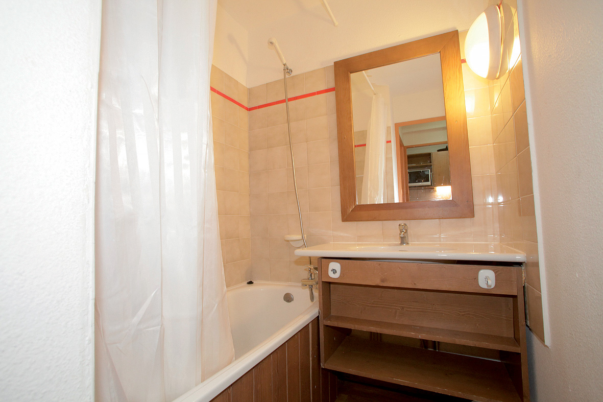 studio 4 typ B - 21 m² - kabína s rozkladacím gaučom typu "zásuvka" pre 2 osoby alebo poschodovou posteľou spravidla oddelená zasúvacou stenou, obývacia izba s kuchynským kútom a rozkladacím gaučom pre 2 osoby (možný aj typ "zásuvka"), sociálne zariadenie s vaňou, spravidla balkón