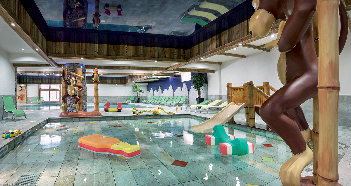 Centre O des Cimes - bazén# 15 x 5 m s lehátkami, detský bazénik#, vírivka#, fínska sauna#, para#, multifunkčná sprcha#, masáže*, kozmetické služby*, veľká posilňovňa#; služby označené # môžu využívať deti do 16 rokov len v sprievode dospelej osoby