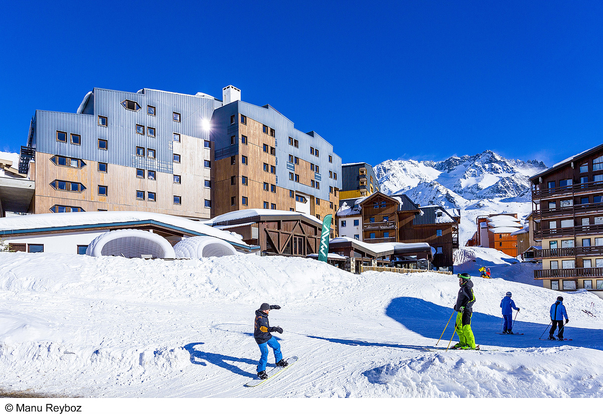 Val Thorens, centrum - 100 m, skiareál Val Thorens - 0 m