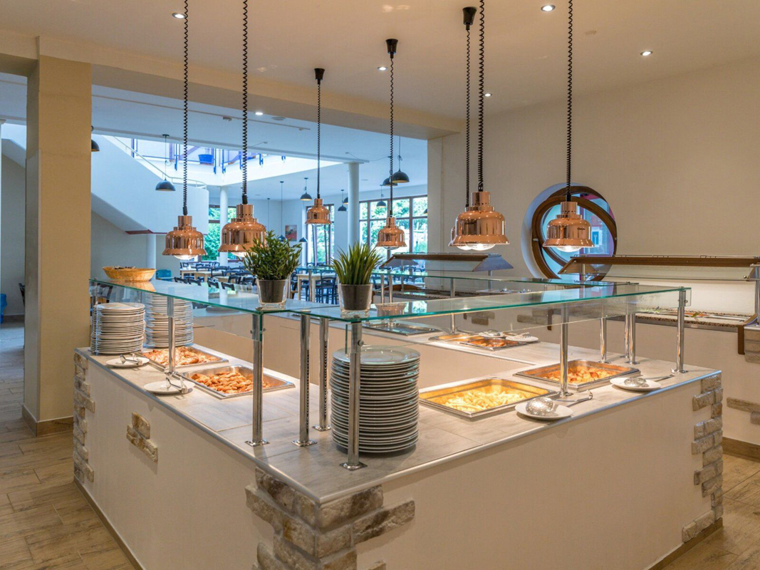 večera - formou bufetu studených a teplých predjedál, hlavných jedál s prílohou, šalátov a dezertov, samostatný detský bufet; od 12:00 do 21:00 hod. vybrané nealkoholické nápoje, od 16:00 do 21:00 hod. pivo a stolové víno, ostatné nápoje za príplatok