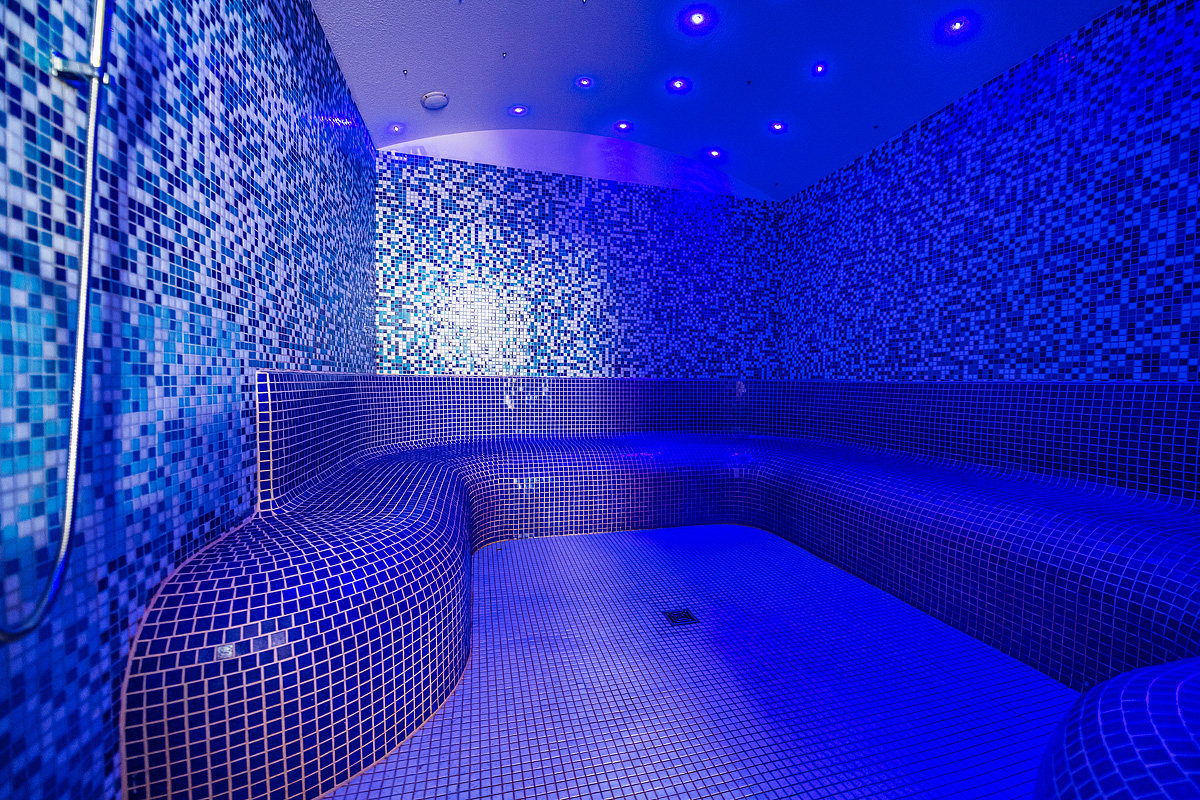 vnútorný bazén 16x5 m, malý bazén pre deti, fínska sauna, parný kúpeľ, vírivka, masáže*, kozmetické služby a špeciálny diétny programy*, posilňovňa, stolný tenis