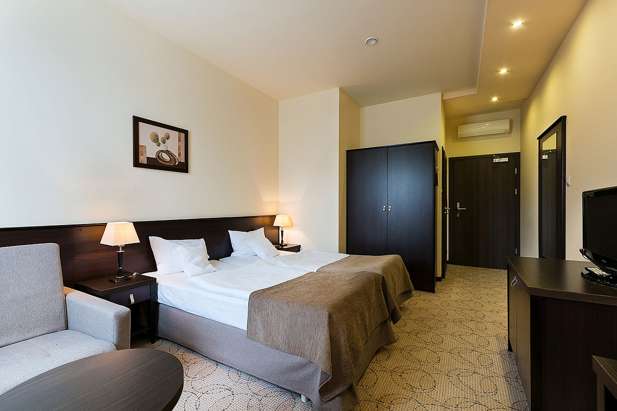 Superior 2/3 - 24 m² izba s manželskou posteľou či 2 samostatnými lôžkami (100 x 200 cm) a rozkladacím gaučom formou prístelky, sociálne zariadenie