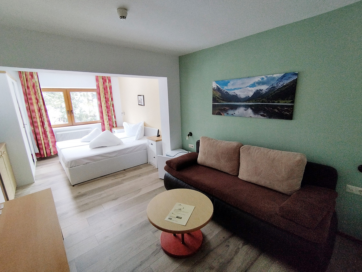 25 m² - spálňa s manželskou posteľou, obývacia izba s rozkladacím gaučom pre 1 dospelú osobou a dieťa do nedovŕšených 12 rokov, sociálne zariadenie so sprchou alebo vaňou, balkón; minimálna obsadenosť izby sú 3 plne platiace osoby
