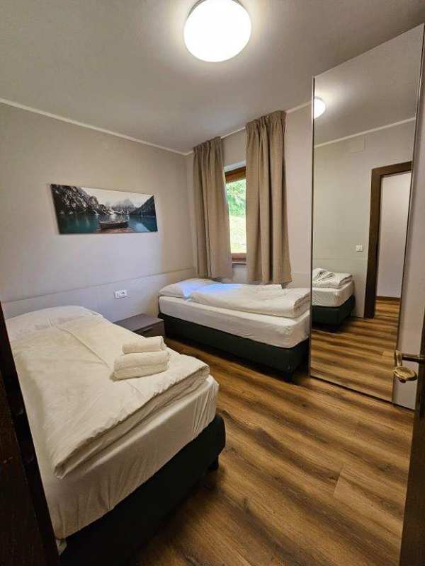 40 m² - spálňa s 2 oddelenými lôžkami, obývacia izba s kuchynským kútom a rozkladacím gaučom pre 2 osoby, sociálne zariadenie, predsieň, balkón