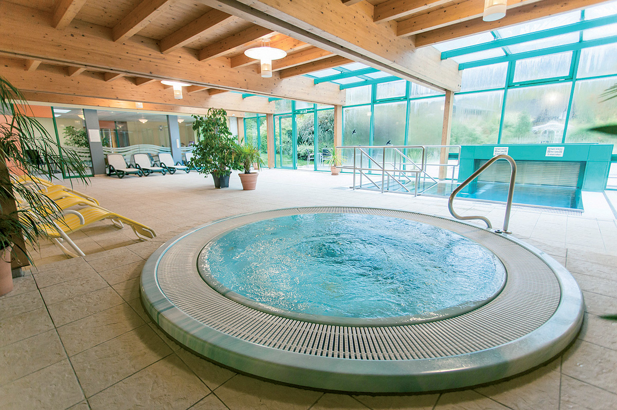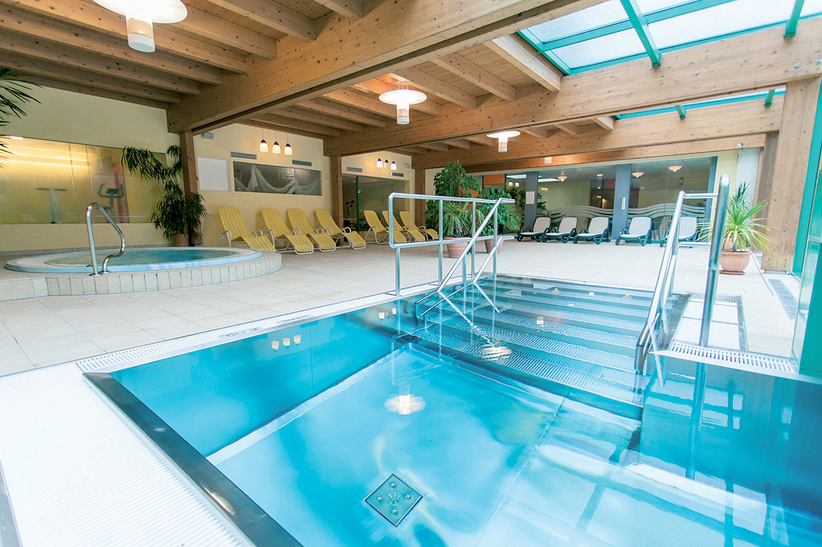 vonkajší vyhrievaný bazén 13 x 8 m, vírivka až pre 8 osôb, sauna, para, relaxačný kútik s lehátkami, menšia posilňovňa, masáže*, kozmetické služby*