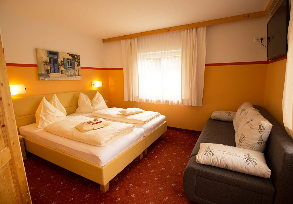 Family 2+2 - 22 až 26 m² - izba s manželskou posteľou, možnosť rozkladacej pohovky až pre 2 deti do nedovŕšených 12 rokov, sociálne zariadenie so sprchou alebo vaňou, spravidla balkón