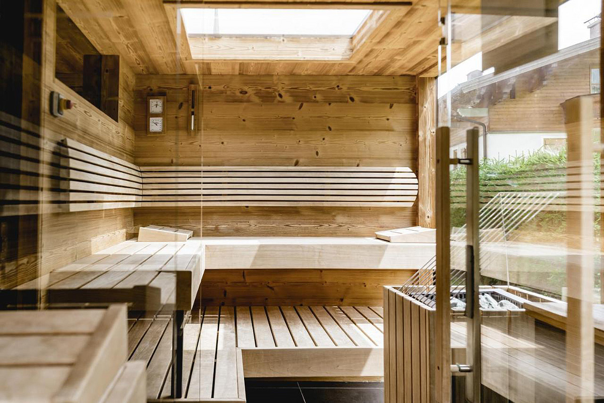bazén s protiprúdom, vonkajšia fínska sauna s panoramatickým výhľadom, horizontálne solárium*, masáže*
