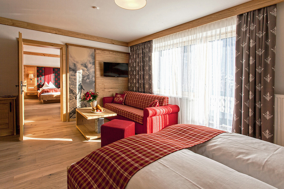 Deluxe 2+2 Alpin - 25 m² - izba s manželskou posteľou, sociálne zariadenie so sprchou či vaňou, prípadne rozkladací gauč až pre 2 deti do nedovŕšených 16 rokov, balkón; maximálna obsaditeľnosť izby sú 2 osoby a 2 deti do nedovŕšených 16 rokov