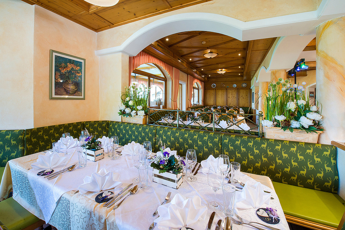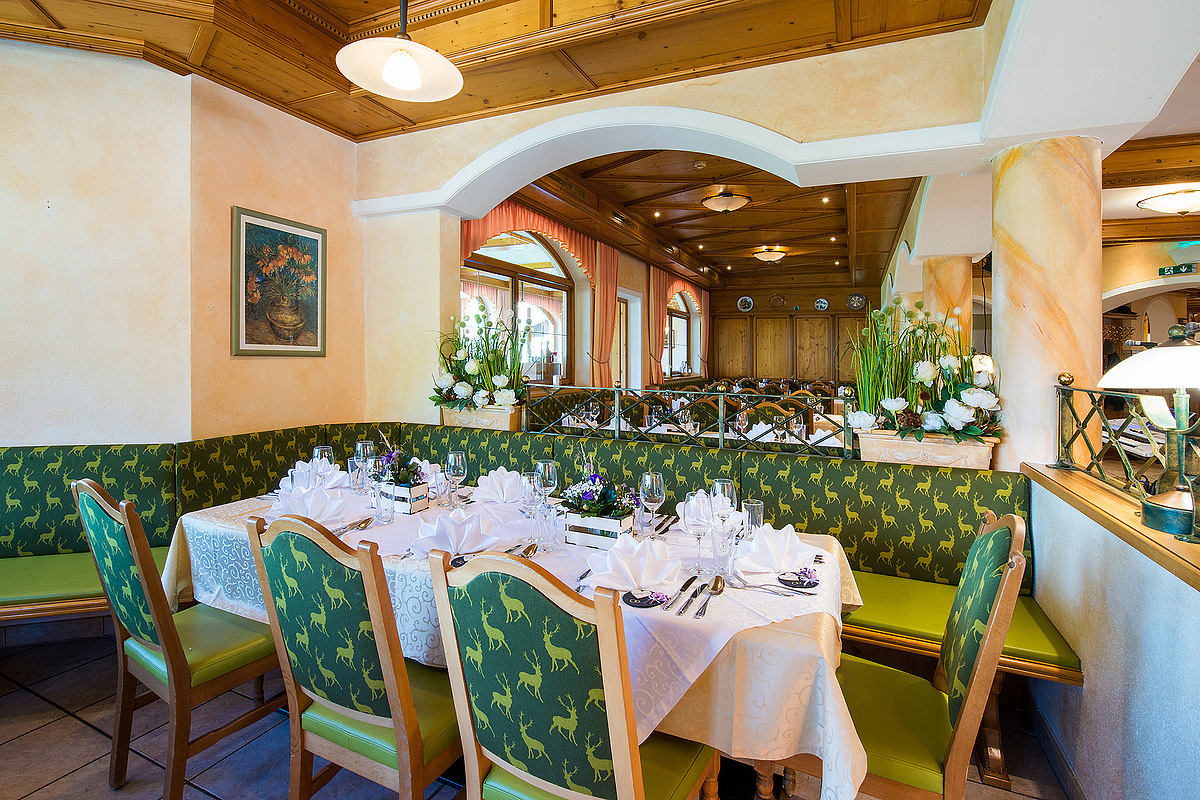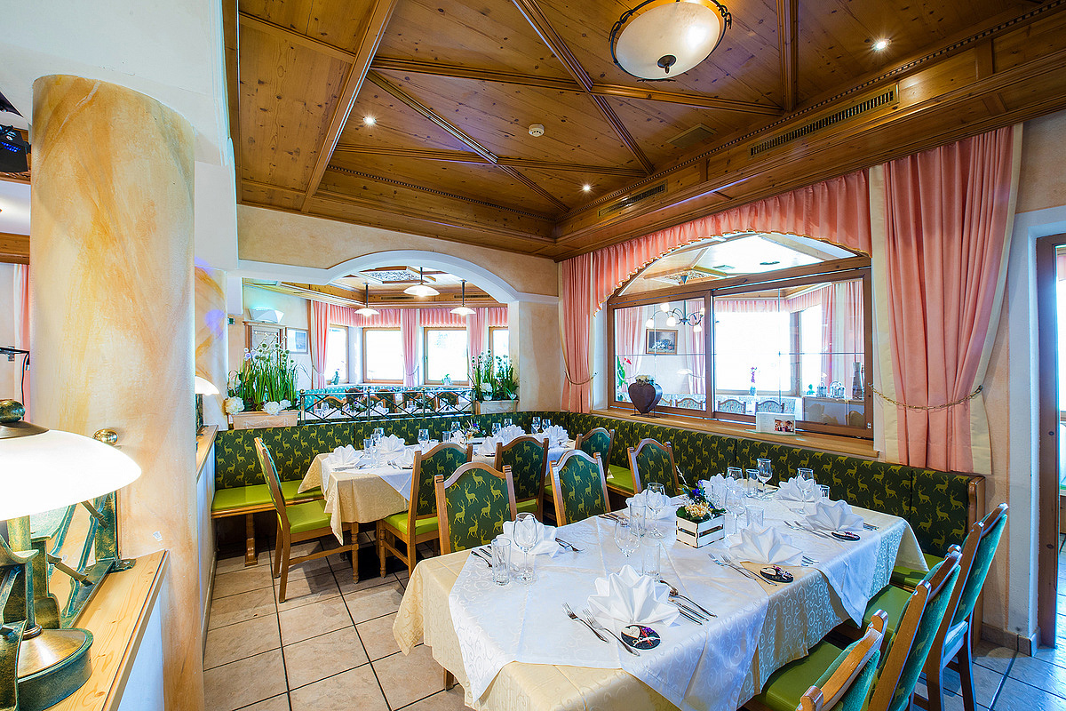 servírované 3chodového menu s výberom hlavného jedla s prílohou, servírované predjedlo či polievka, šalátový bufet, servírovaný dezert, nápoje za poplatok; spravidla 1x týždenne špeciálny tirolský bufet