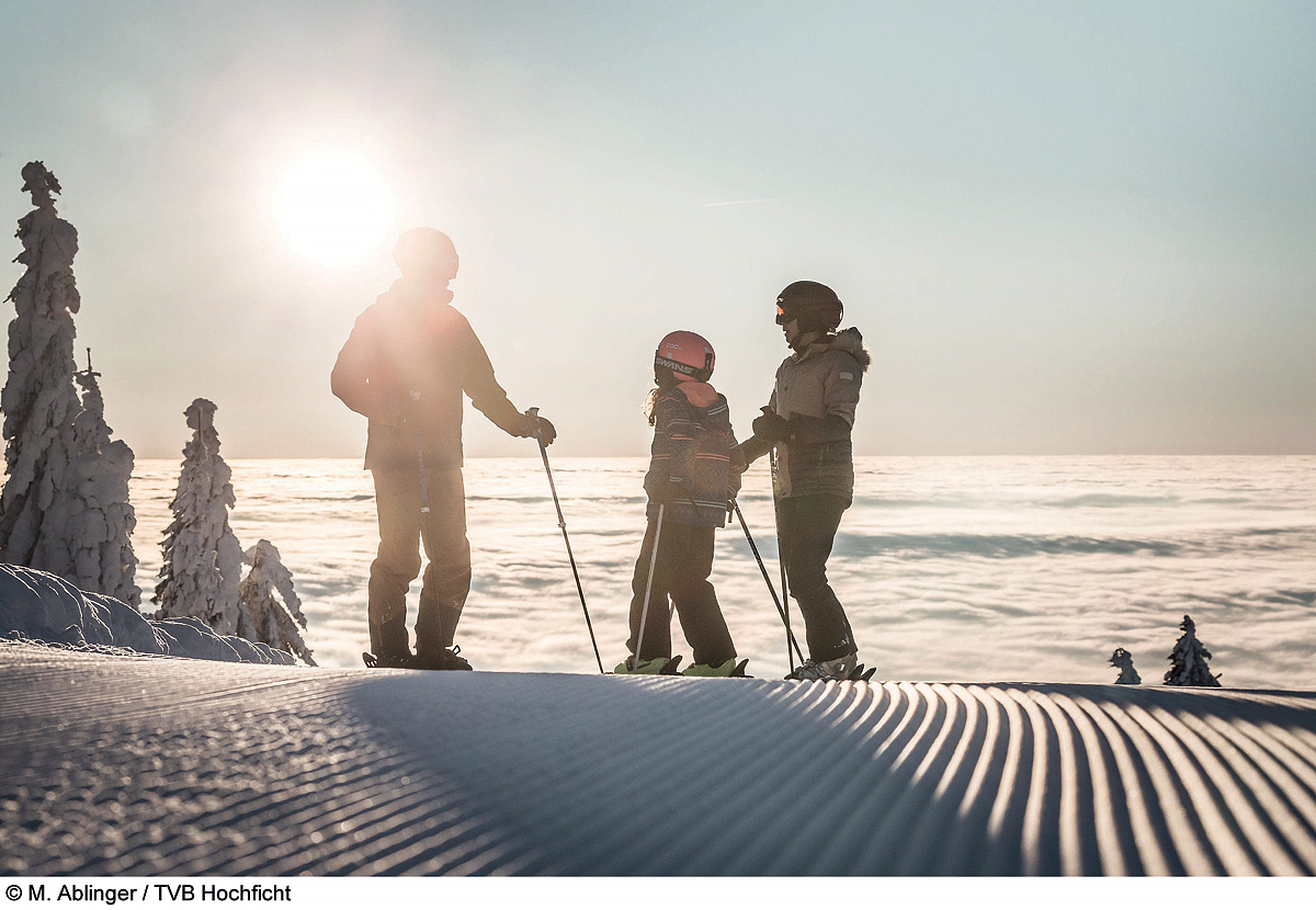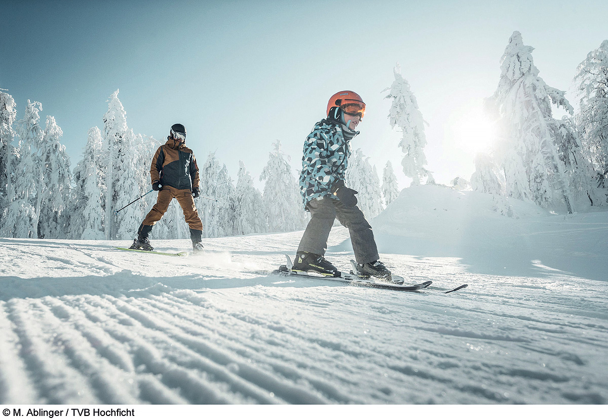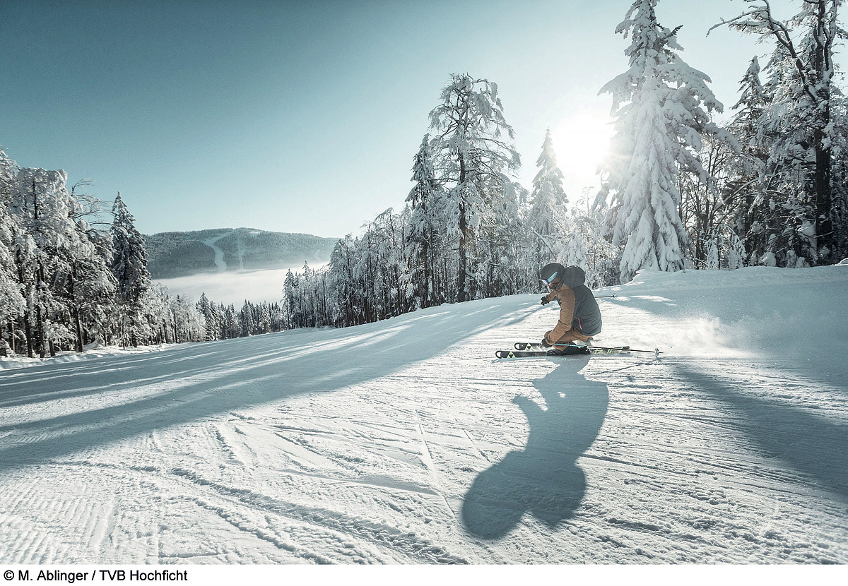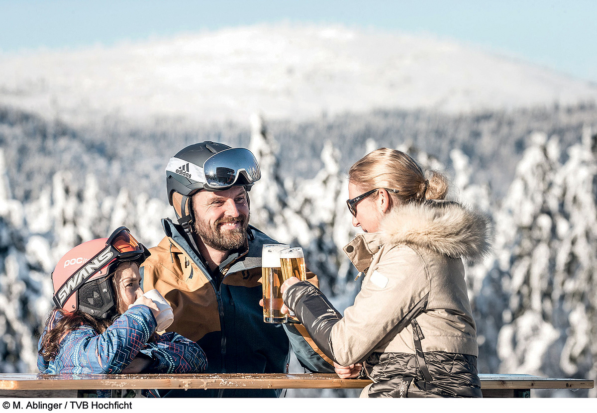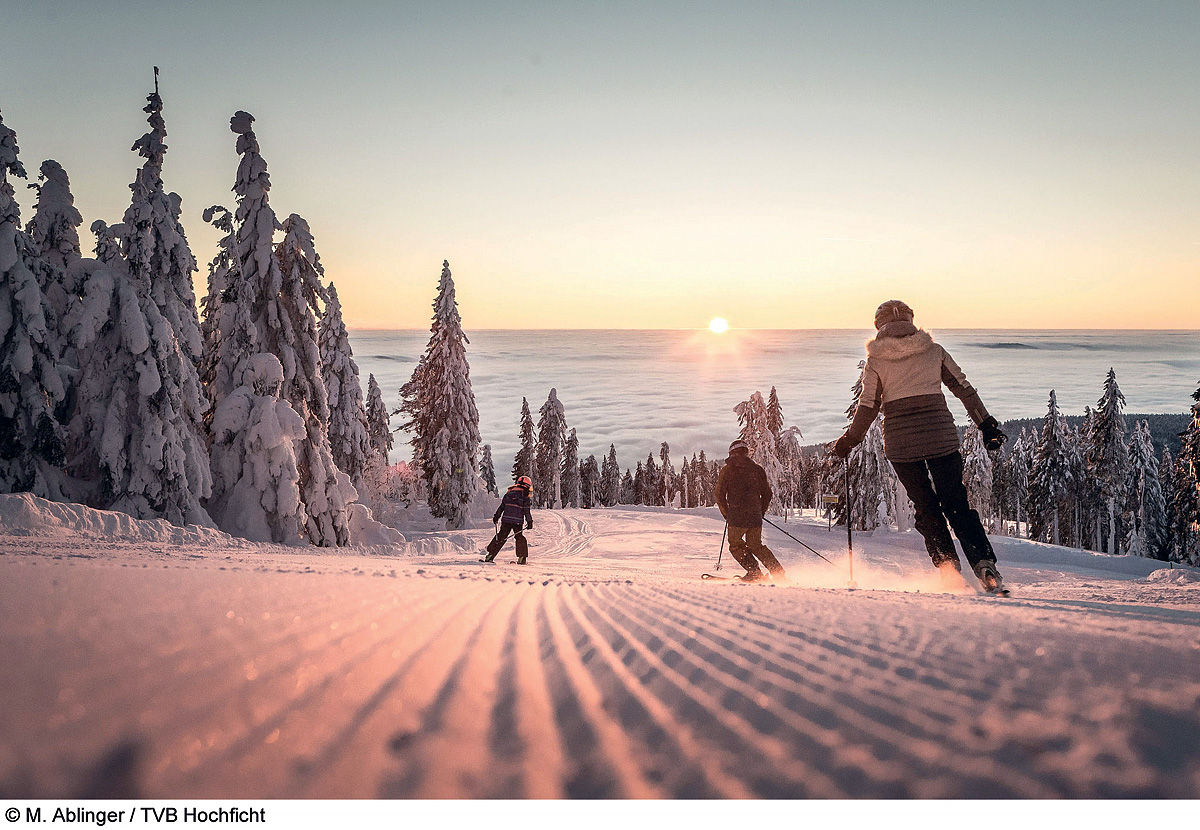 • zimné radovánky na lyžiarskej „húpačke“ medzi tromi vrcholmi, zjazdovkou na troch kopcoch – Hochficht (Smrčina), Reischlberg (Hraničník) a Zwieselberg