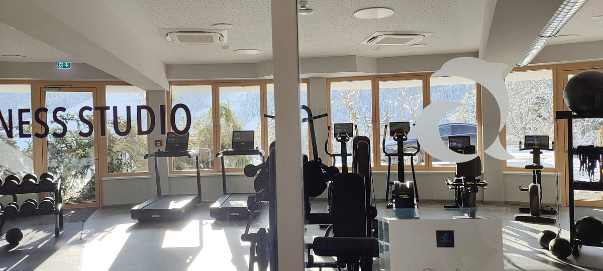 bazén, fínska sauna, vonkajšia sauna, para, horizontálne solárium* , relaxačný kútik s lehátkami, moderná posilňovňa, cvičebná sála s výhľadom na hory
