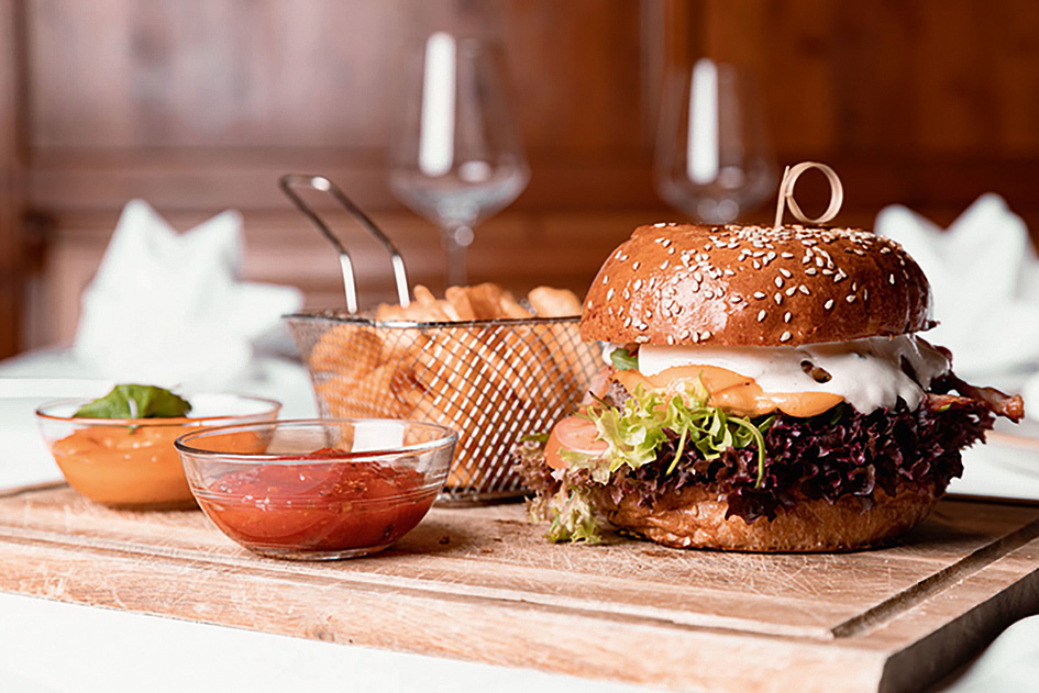 servírované 4 chodové menu s výberom hlavného jedla s prílohou, servírované studené predjedlo či polievka, bohatý šalátový bufet, servírovaný dezert, nápoje za poplatok
