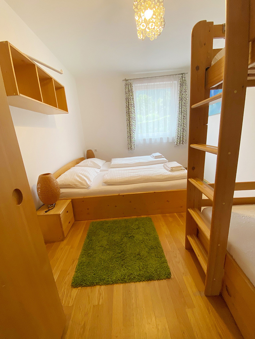65 m² 1 spálňa s manželskou posteľou, 1 spálňa s manželskou posteľou a poschodoovu posteľou, obývacia izba s kuchynským kútom a rozkladacím gaučom pre 2 osoby, sociálne zariadenie, oddelené WC, terasa