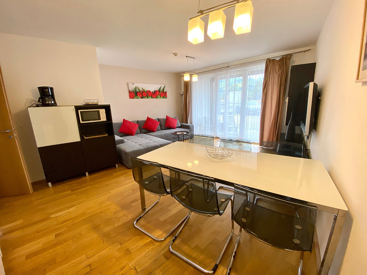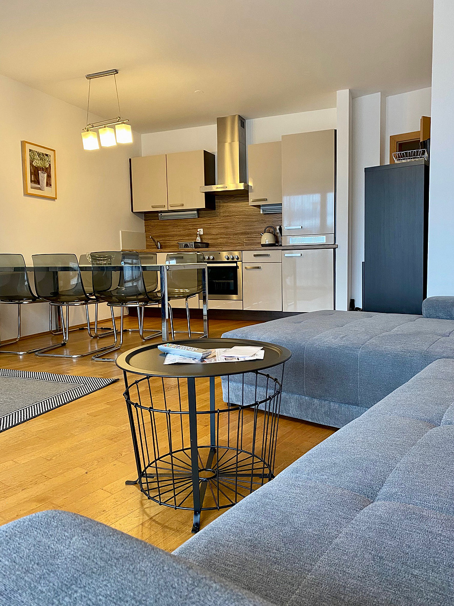 26 m² obývacia izba s manželskou posteľou a rozkladacím gaučom pre 1 osobu, kuchynský kút, sociálne zariadenie, balkón