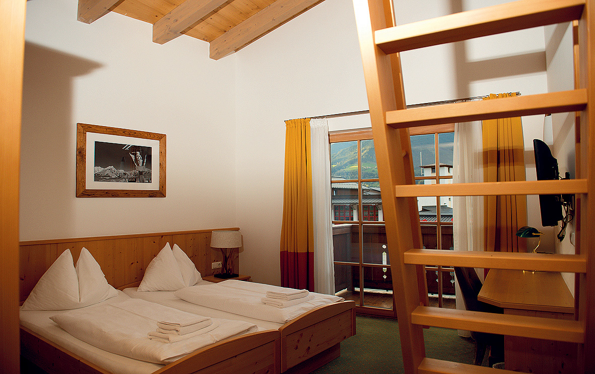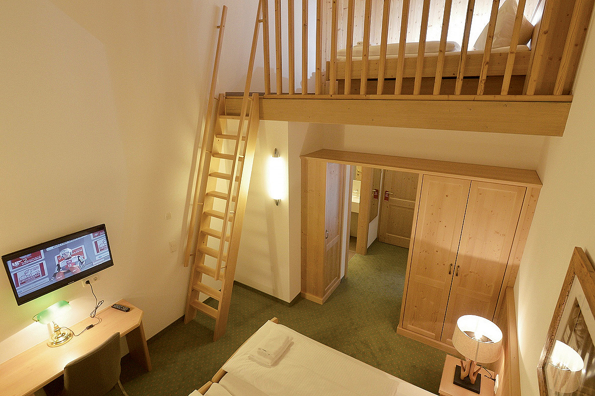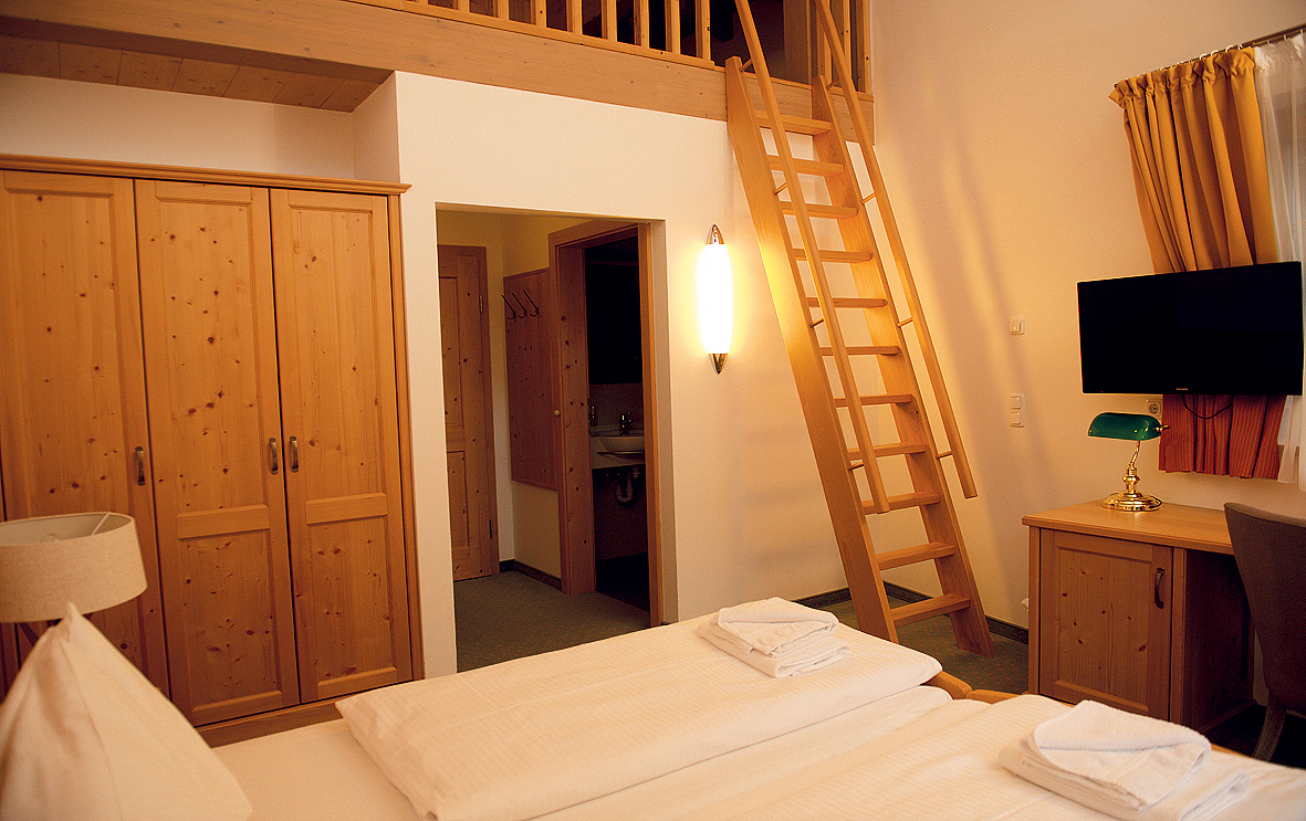 obývacia izba s 2 samostatnými lôžkami alebo manželskou posteľou, neuzavreté zvýšené poschodie v rámci obývacej izby s 1 samostatným lôžkom a prípadne ďalším lôžkom pre 1 osobu, sociálne zariadenie, spravidla balkón