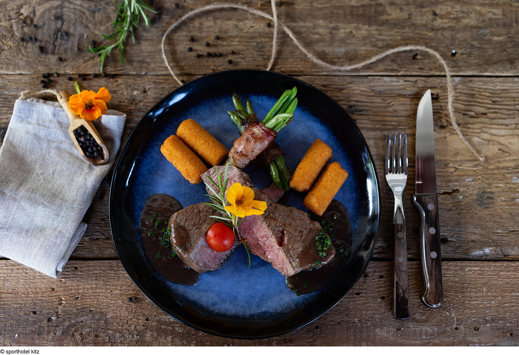 servírované 3chodové menu s výberom hlavného jedla s prílohou, servírované studené predjedlo či polievka, spravidla servírovaný dezert a šalát, nápoje za poplatok
