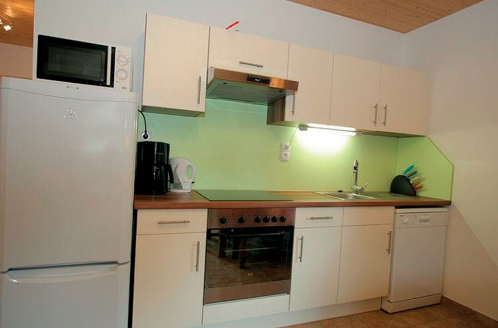 vybavenosť apartmánov - TV (v typológií trilo 6 C 3x), umývačka riadu, trúba, spravidla mikrovlnka, kávovar, rýchlovarná kanvica, wi-fi pripojenie k internetu