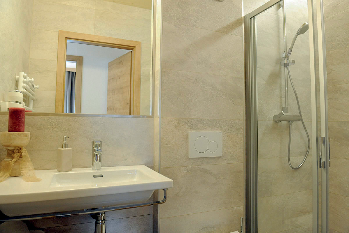 60 m² - 2 spálne s manželskou posteľou, obývacia izba s kuchynským kútom a rozkladacím gaučom pre 2 osoby, predsieň, 2x sociálne zariadenie, terasa