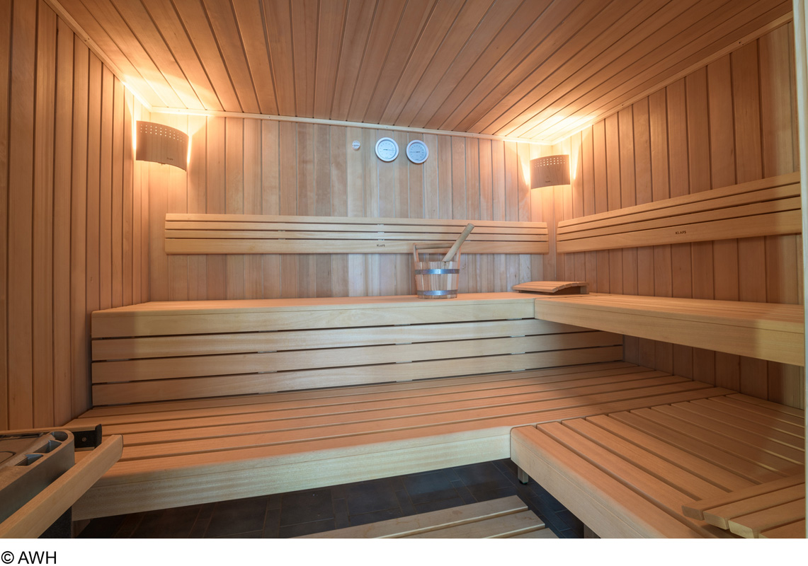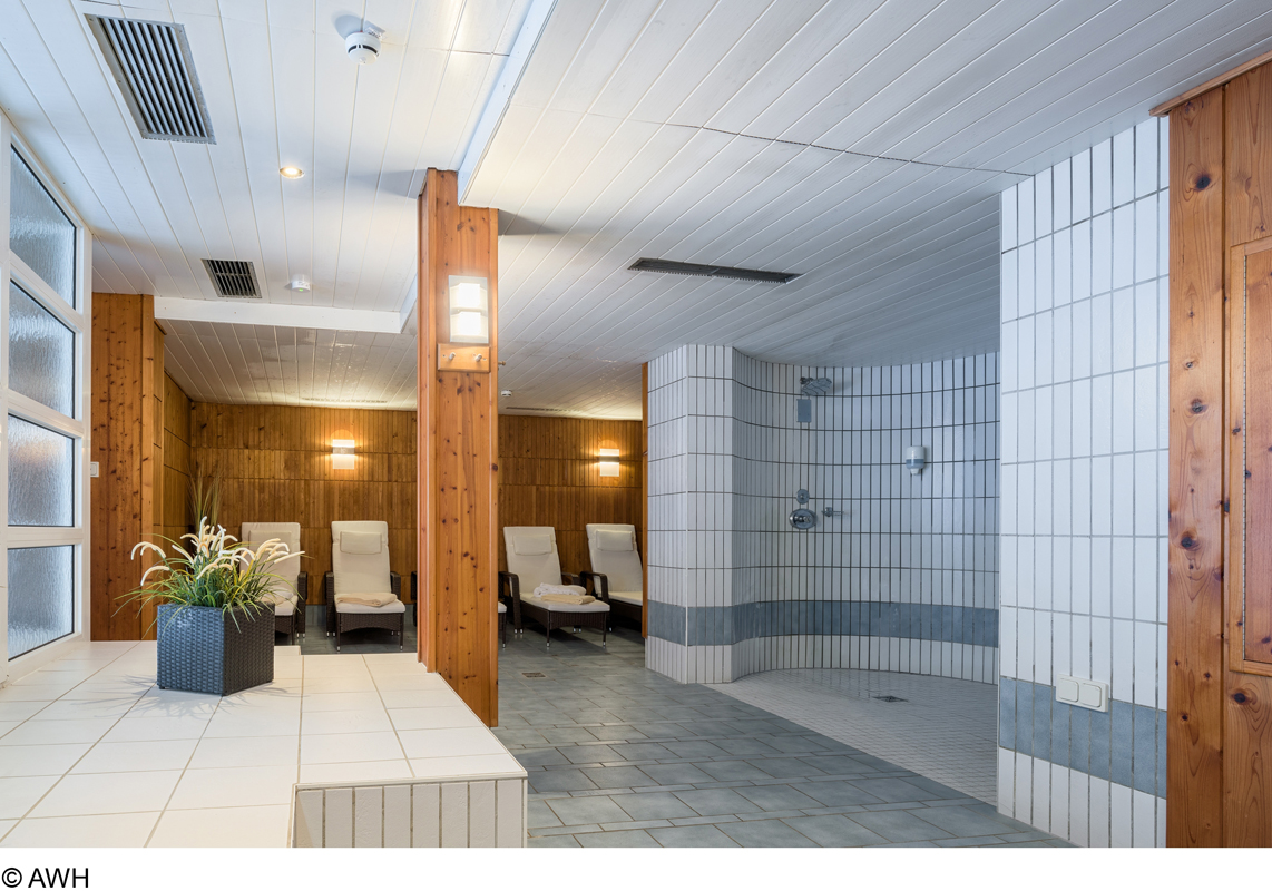 bazén 40 m², fínska sauna, para, Kneippov chodník, infrakabína*, relaxačný kútik s ležadlami, masáže*