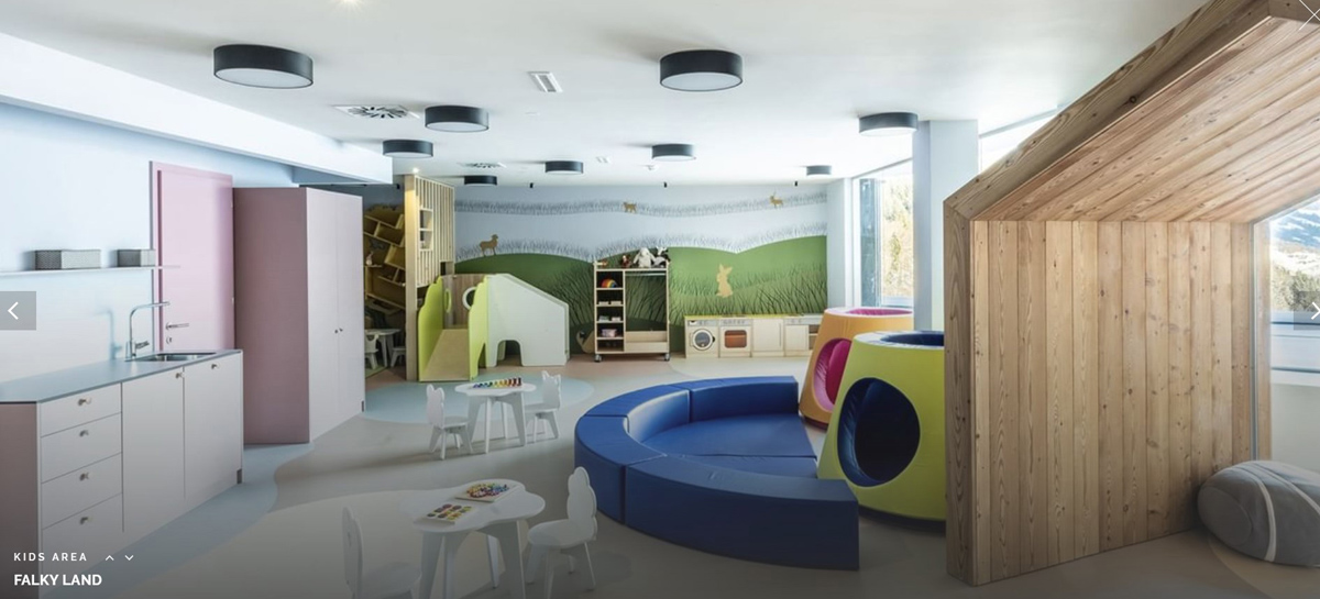 recepcia / lobby, reštaurácia vyhradená pre hotelových hostí "Stäffa", bar "Infragranti", spoločenská miestnosť, wi-fi pripojenie k internetu, detský klub Falky Land, detská herňa, detské kino, detská lezecká stena, opatrovateľská služba* detí (do 3 rokov), opatrovateľská služba detí (od 4 do 12 rokov) / animačné programy (v nemčine alebo angličtine), miestnosť na úschovu batožiny, úschovňa lyží a lyžiarskych topánok, výťah, vyhradené parkovisko, garážové státia, požičovňa a servis lyžiarskeho vybavenia, lyžiarska škola