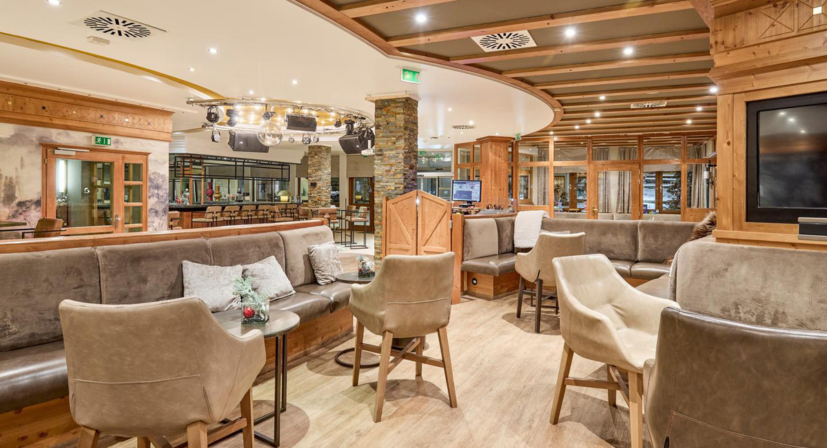 vybavenosť a služby - recepcia / lobby, reštaurácia vyhradená pre hotelových hostí, 2x bar, hotelové divadlo, detský klub "Flosse club" (služba stráženia detí od 2 do 6 rokov / animačné programy (v nemčine či angličtine), disco "Blue Dolphin", wi-fi pripojenie k internetu, úschovňa lyží a lyžiarskych topánok, výťah, garážové miesta (vjazd pre autá max. výška 2 metre); lyžiarske skupinové kurzy pre deti od 4 rokov (snowbordové kurzy pre deti od 10 rokov) a dospelých (kurzy pre začiatočníkov začínajú vždy len v nedeľu!!!)