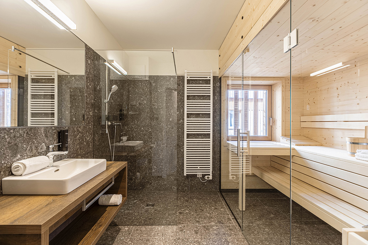 quintilo Superior 10 Sauna - 115 až 128 m² - 3 spálne s manželskou posteľou, spálňa s 2 poschodovými posteľami, obývacia izba s kuchynským kútom, 4x sociálne zariadenie, privátna sauna, balkón či terasa