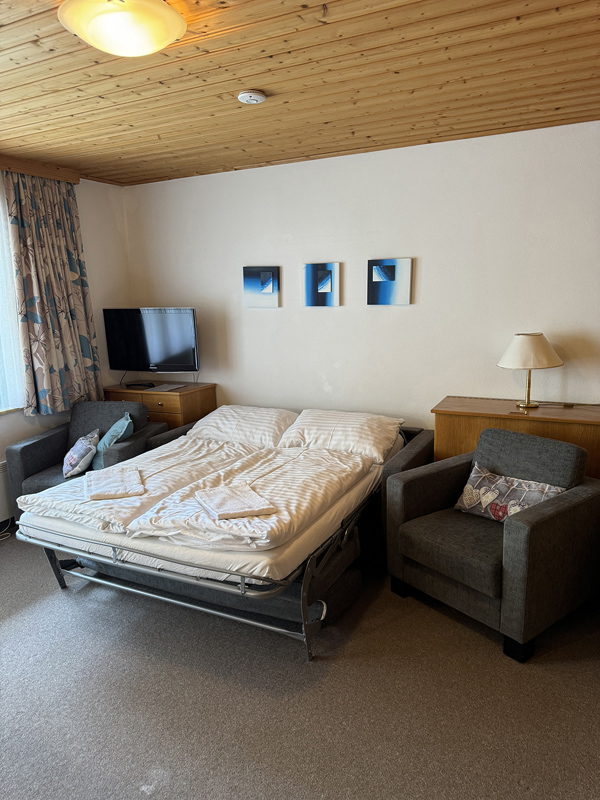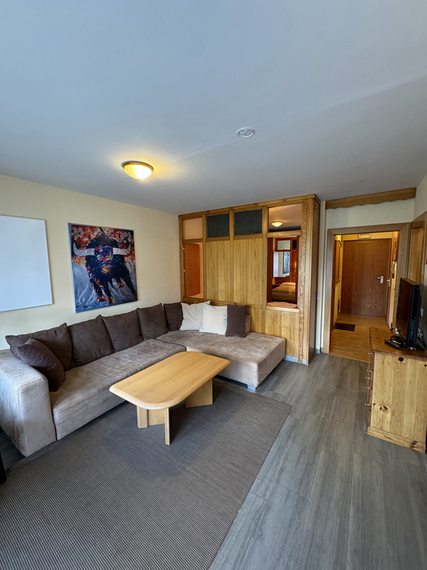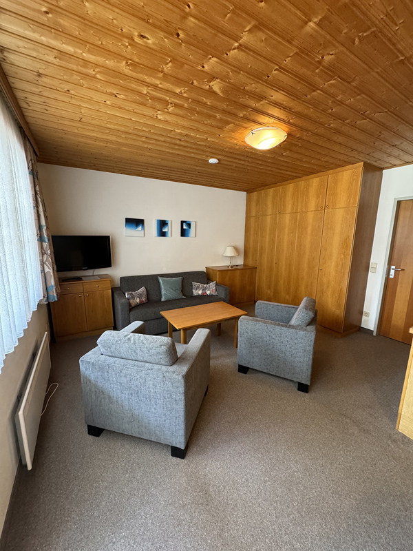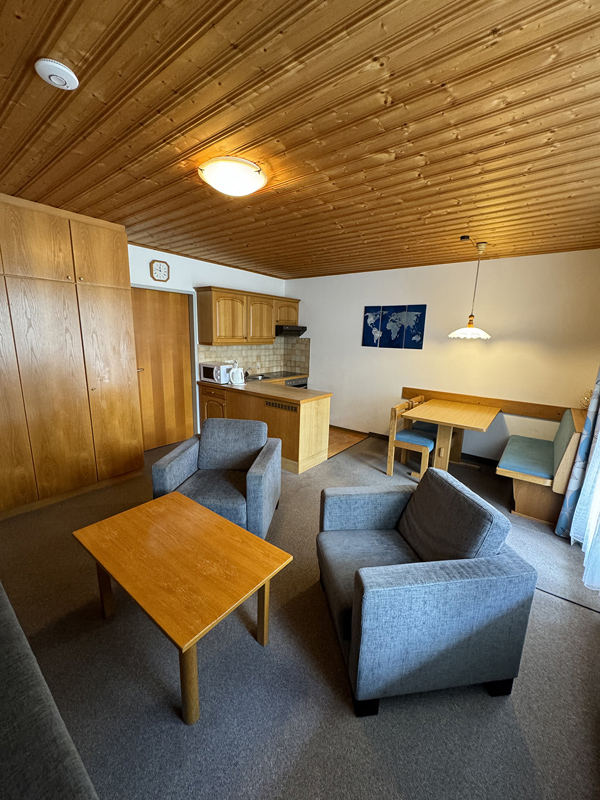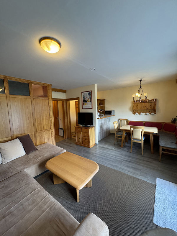 mono 4 Gerlinde - 35 m² - obývacia izba s kuchynským kútom a manželskou posteľou (160 x 200 cm) a opticky oddelenou poschodovou posteľou pre 2 osoby, predsieň, sociálne zariadenie, 2x balkón (2x s výhľadom do údolia); apartmán je na 3. poschodí