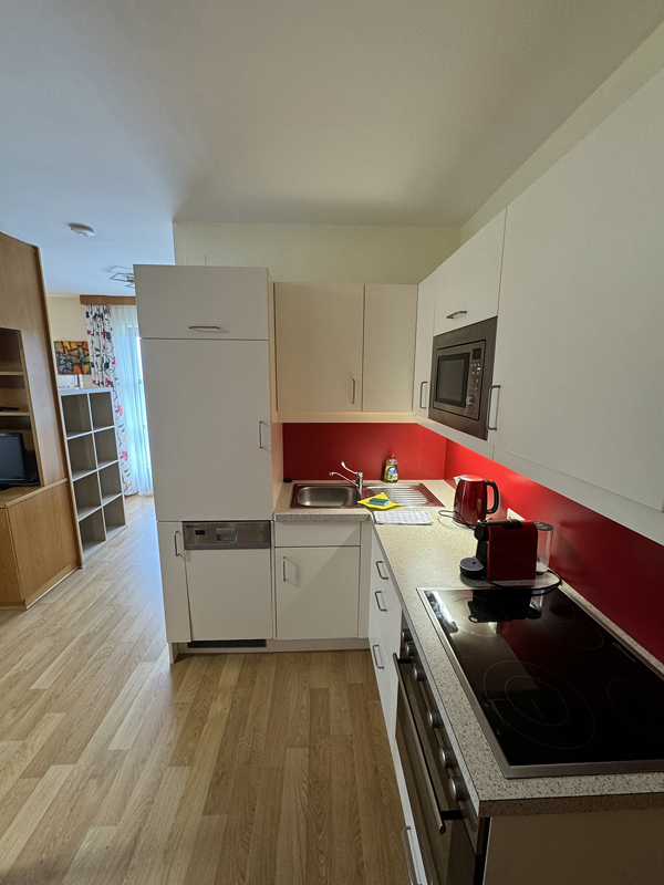 vybavenosť apartmánov - TV sat., trúba (len apt. Iris), umývačka riadu (len apt. Ameris, Regina a Gerlinde), mikrovlnka (okrem apt. Regina), kávovar Nespresso (len apt. Edith a Gerlinde), kávovar, rýchlovarná kanvica