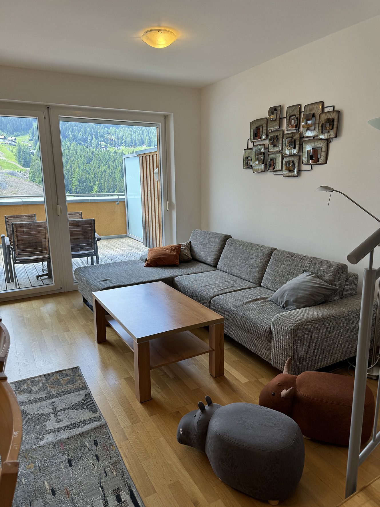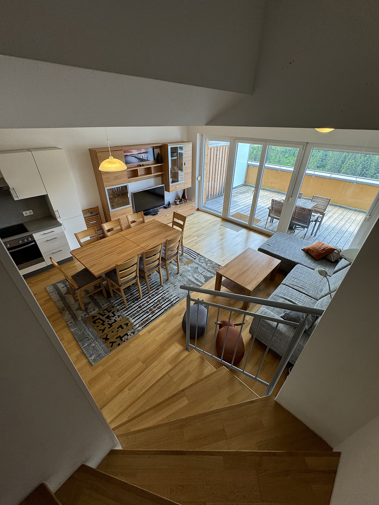 95 m² - 1 podlažie apartmánu: obývacia izba s kuchynským kútom a gaučom, sociálne zariadenie, terasa