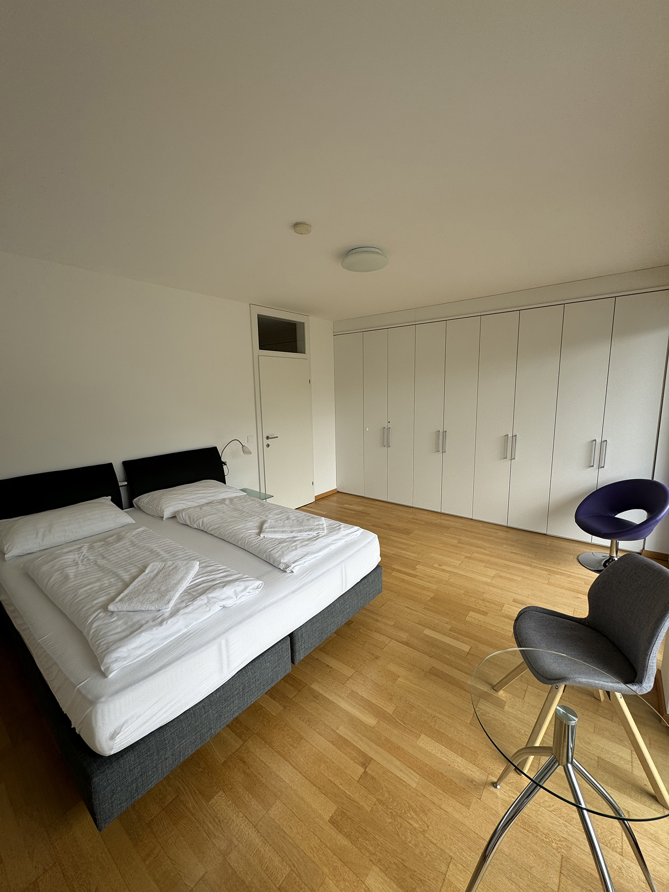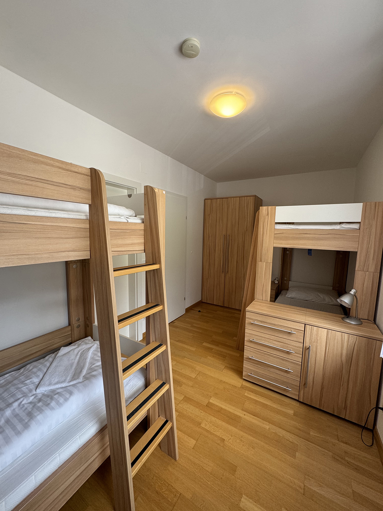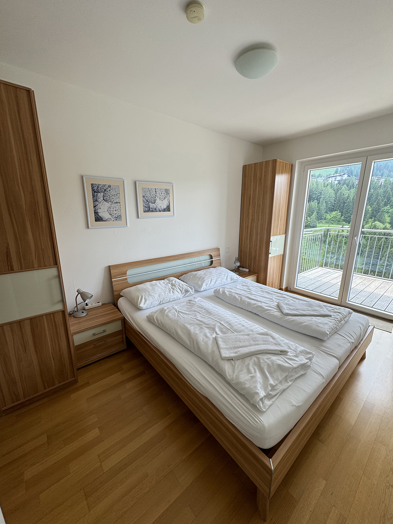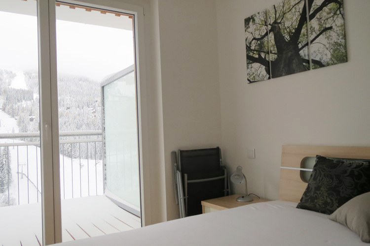 2. podlažie apartmánu: 2 spálne s manželskou posteľou, spálňa s 2 poschodovými posteľami, 3x sociálne zariadenie (vždy prístupné zo spálne), balkón