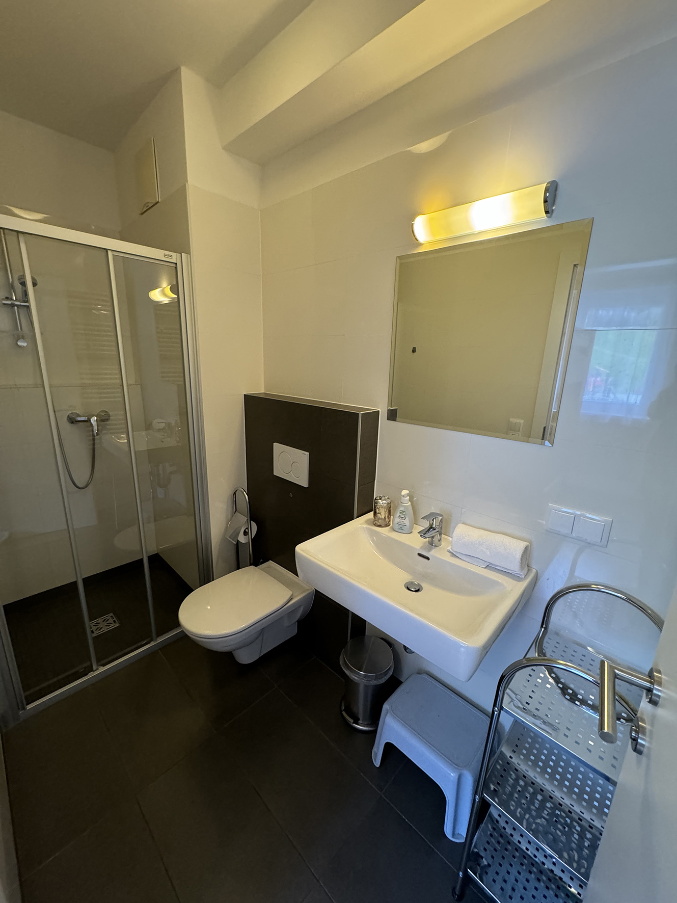 2. podlažie apartmánu: 2 spálne s manželskou posteľou, spálňa s poschodovou posteľou, 3x sociálne zariadenie (vždy prístupné zo spálne), privátna infra sauna, balkón