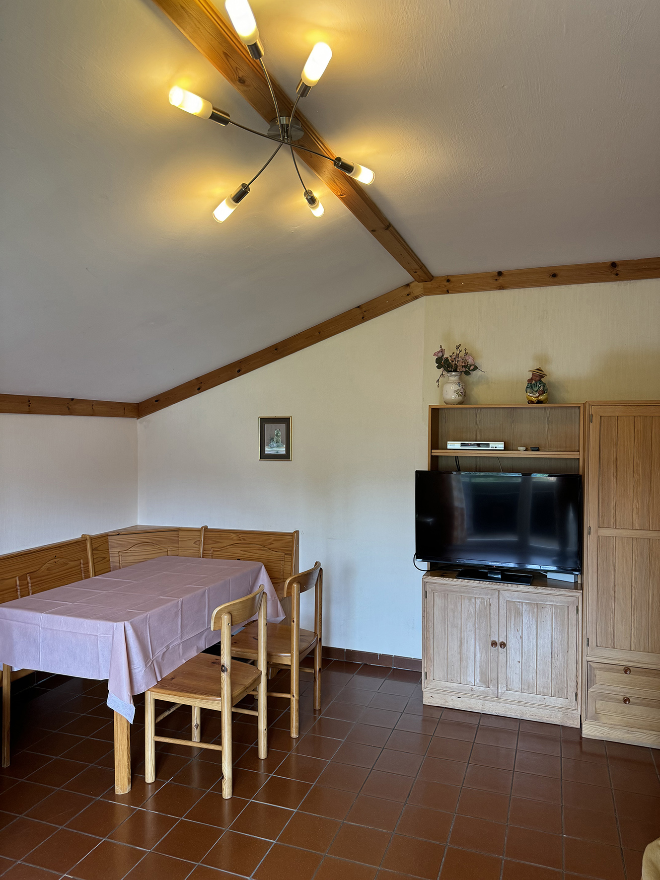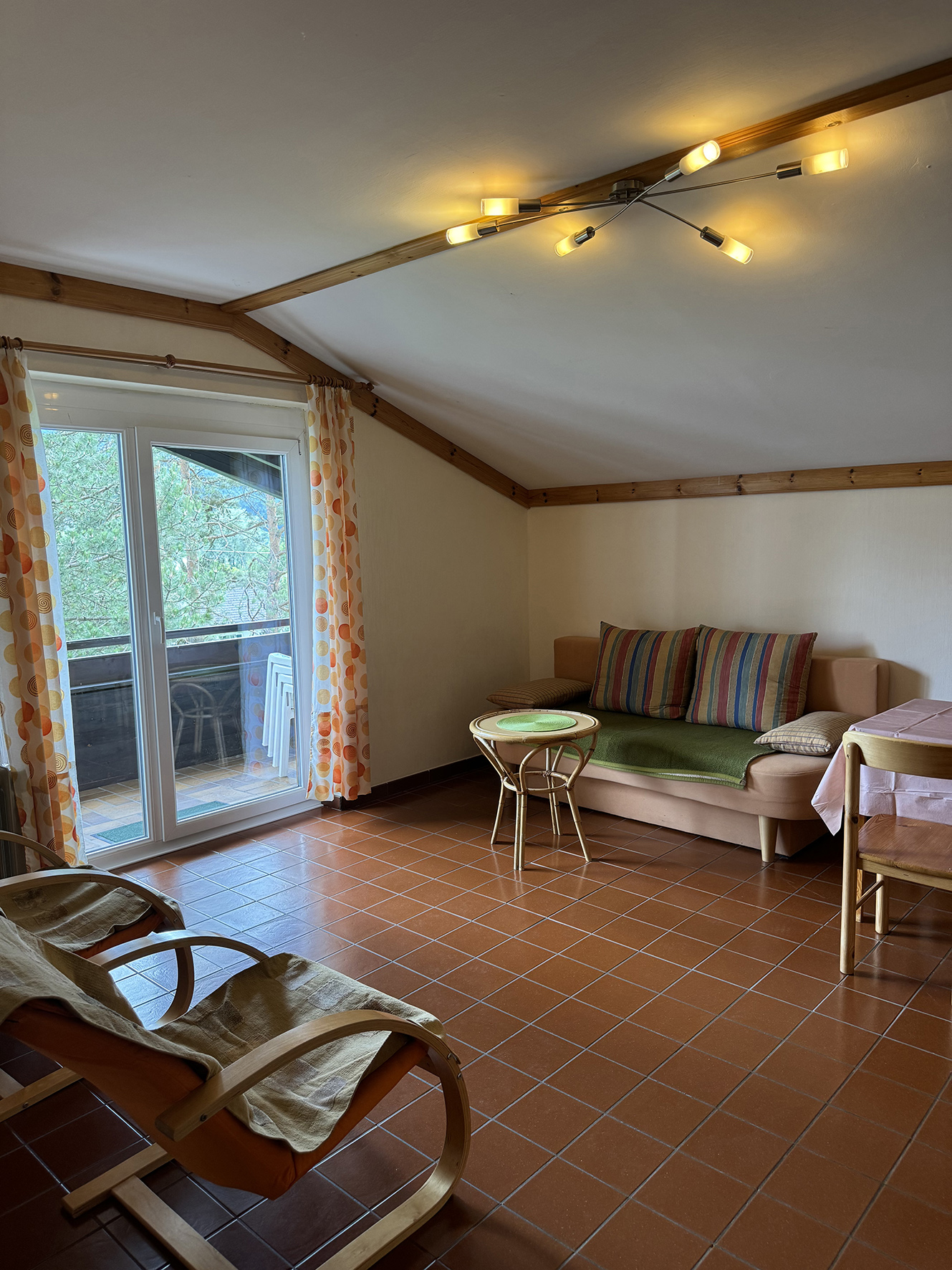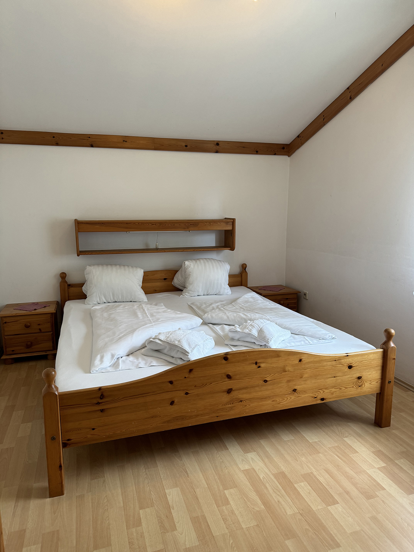bilo 4 - 30 m² - spálňa s manželskou posteľou (so šírkou 140 cm) čiastočne oddelená obytnou stenou od obývacej izby, obývacia izba s kuchynským kútom a rozkladacím gaučom( so šírkou 135 cm) pre 2 osoby, sociálne zariadenie, balkón; byty sú na 1. a 2 poschodí; 1. byt v prízemí, ktorý je skôr odporúčaný v obsadenosti 2 dospelých osôb