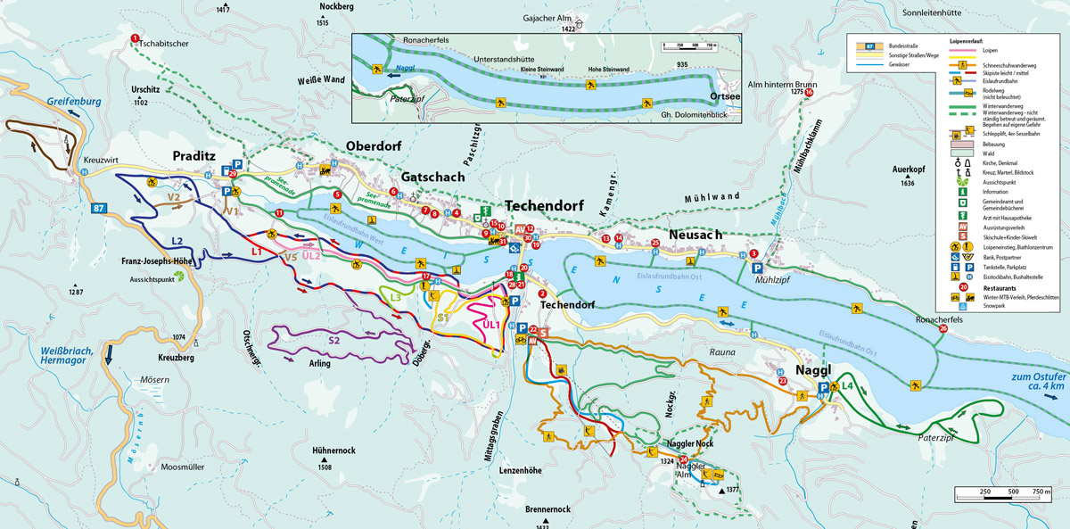 Techendorf, centrum – 0 m, skiareál Weissensee – 1,2 km, skiareál Nassfeld – 31,5 km, skibus – 50 m (Weissensee aj Nassfeld)