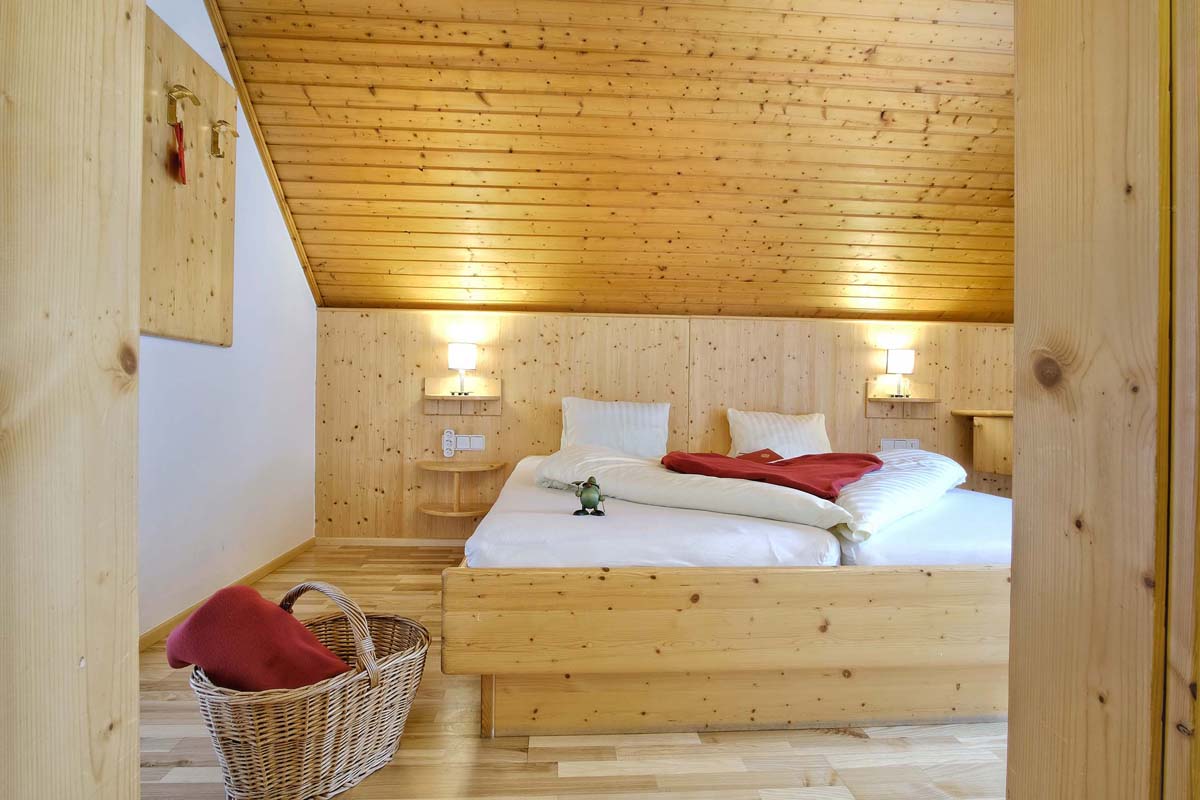 Suite Alpenblick 2+2 - 30 m² - spálňa s manželskou posteľou, obývacia izba s rozkladacím gaučom až pre 2 deti do nedovŕšených 20 rokov, sociálne zariadenie, balkón (izby zvyčajne v podkroví so šikmým stropom)