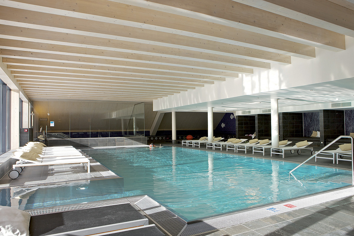 kúpele Acquapura s veľkosťou 1.700 m² - bazén, vonkajší vyhrievaný bazén s vírivkou, detský bazénik so šmýkľavkou, fínska sauna, bio sauna, para, infrakabína, horizontálne solárium*, relaxačná miestnosť s lehátkami, masáže*, kozmetické služby*, posilňovňa, detská lezecká stena, požičovňa lyží*
