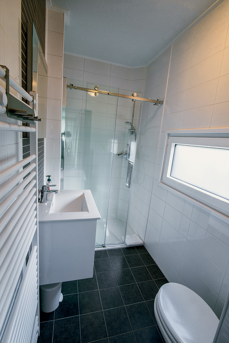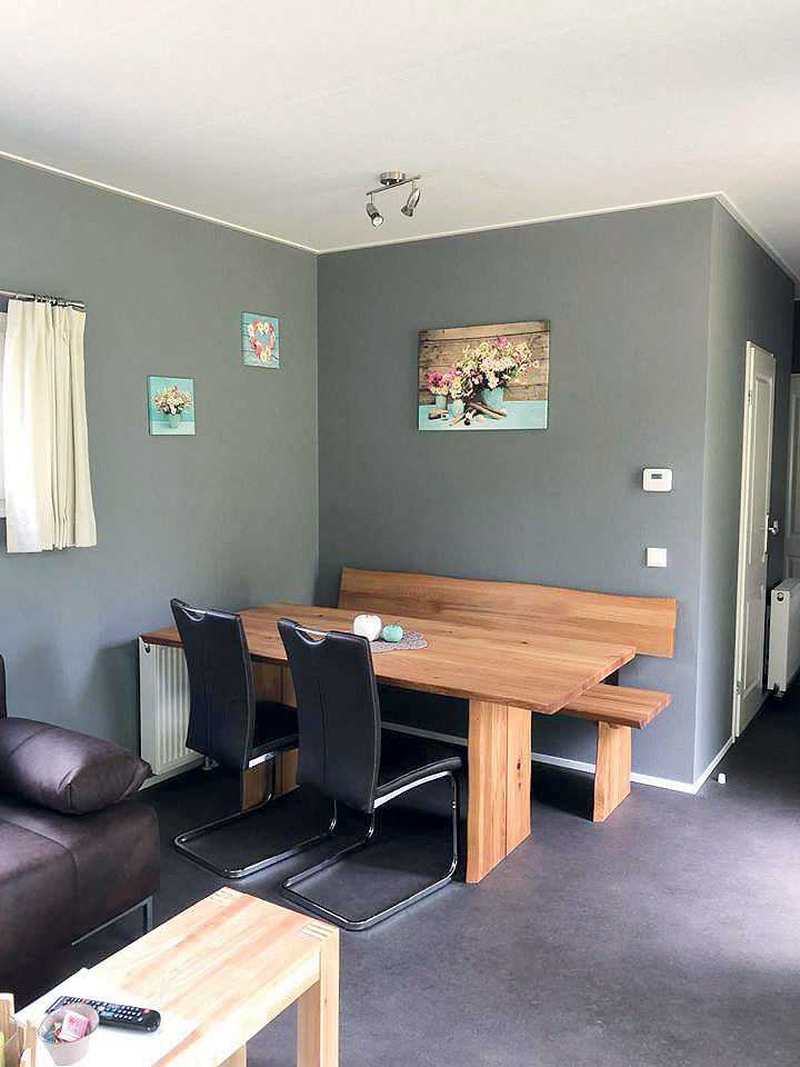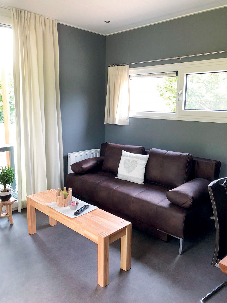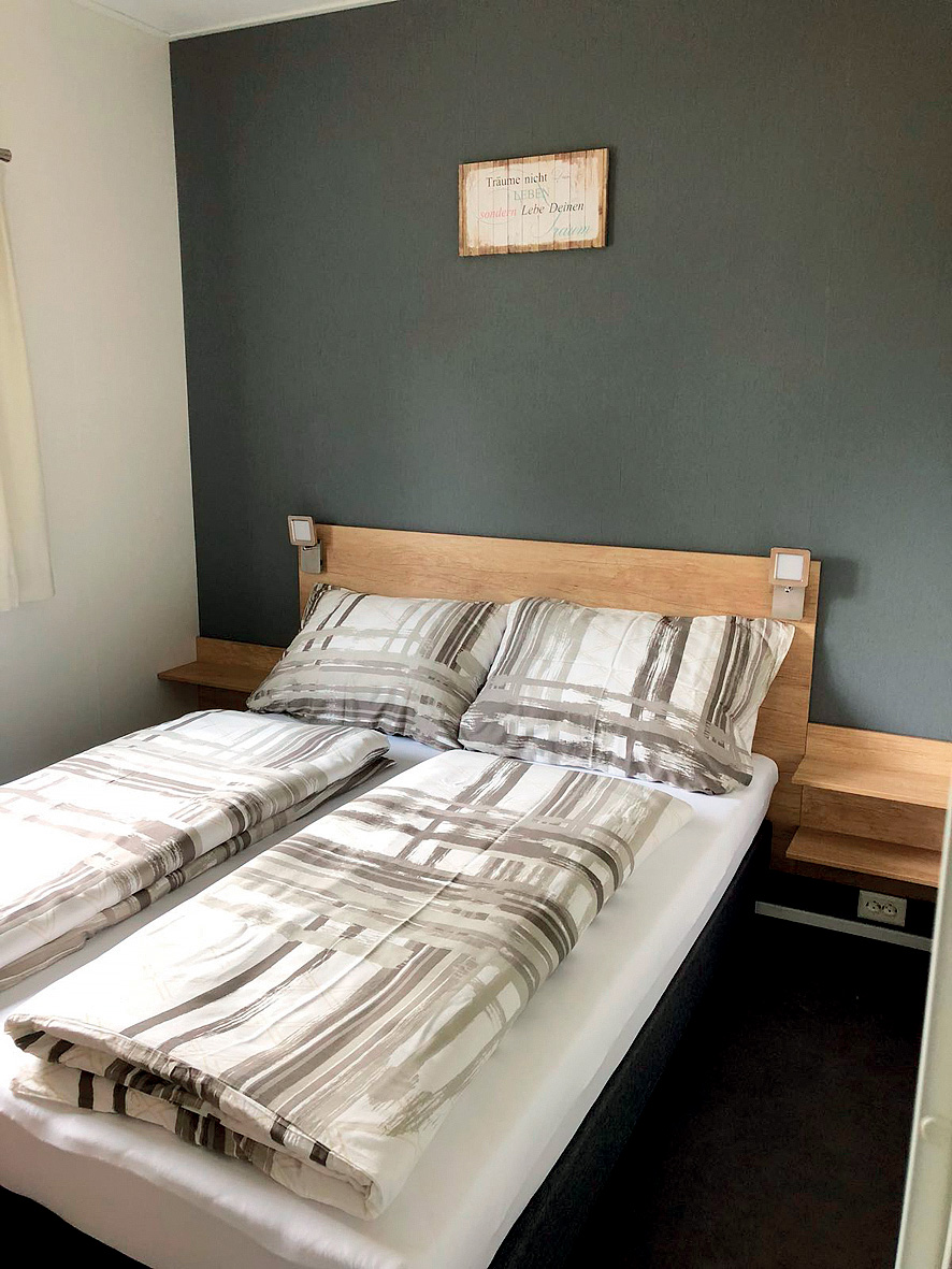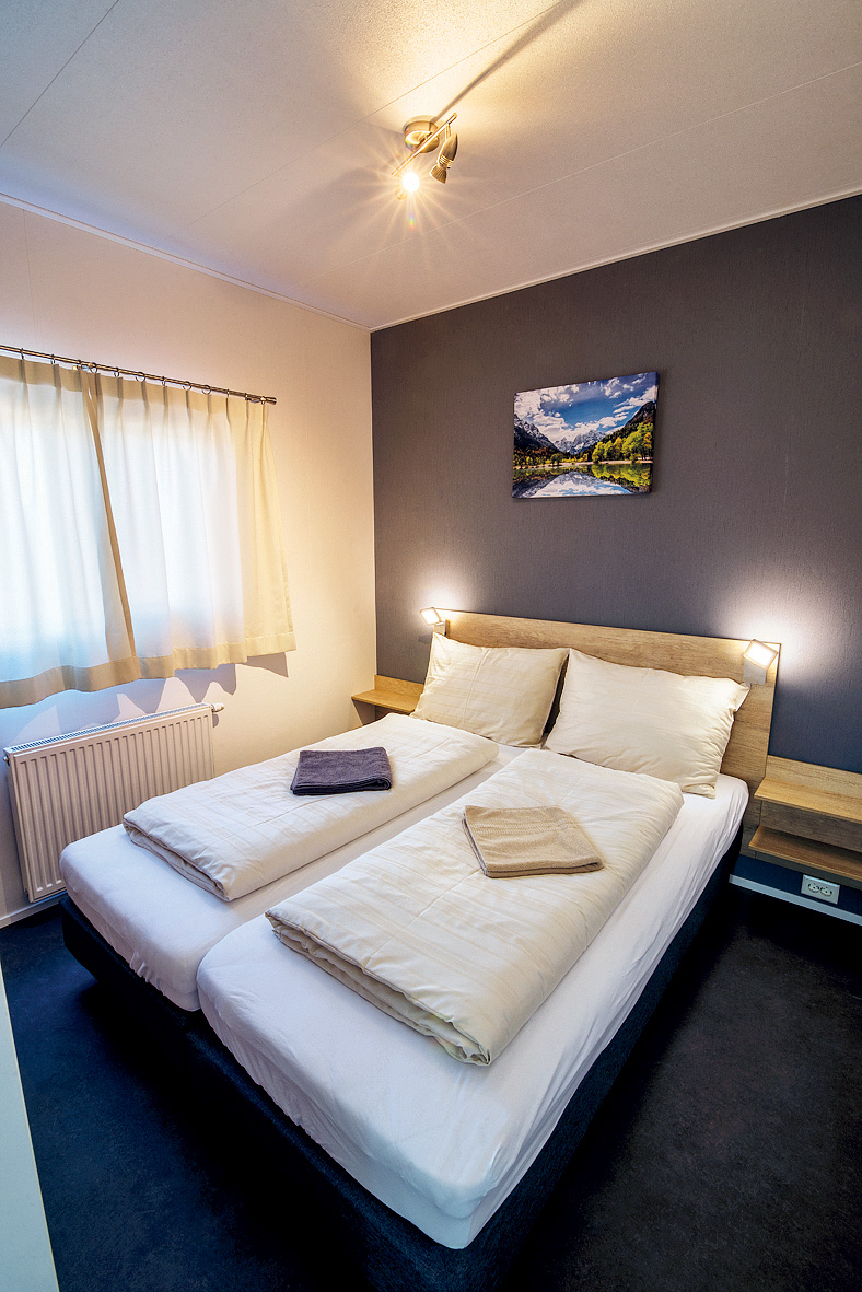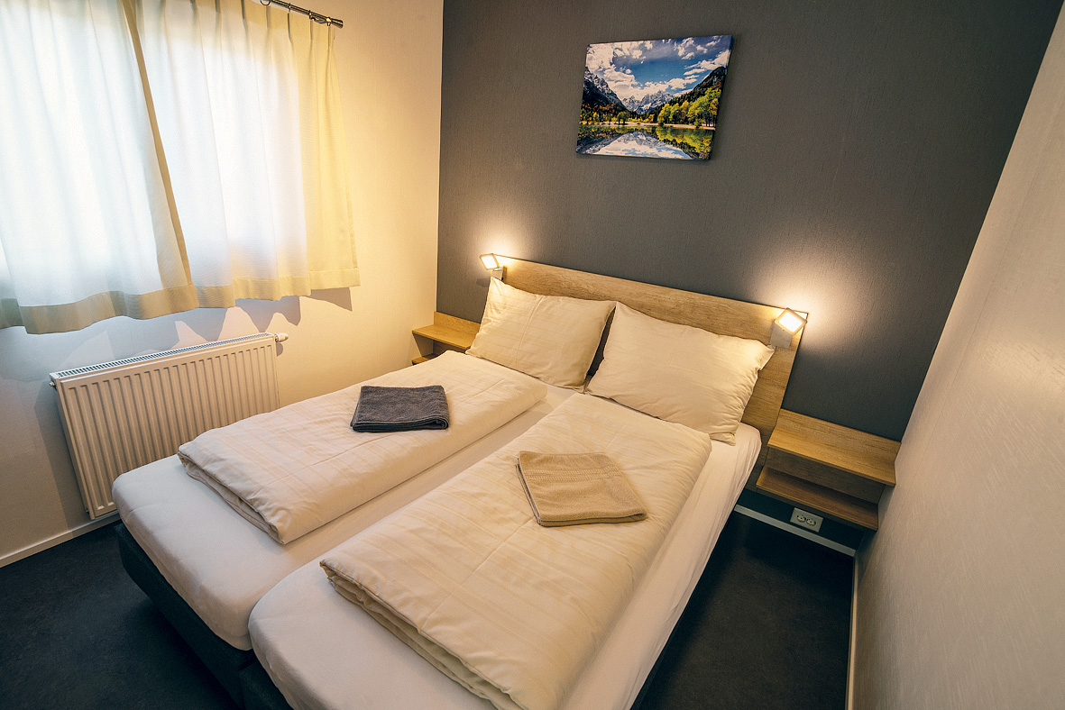 Chalet 2+2 - 45 m² - 1 spálňa s manželskou posteľou, spálňa s 2 samostatnými lôžkami pre deti do nedovŕšených 18 rokov, obývacia izba s kuchynským kútom a rozkladacím gaučom, sociálne zariadenie, terasa