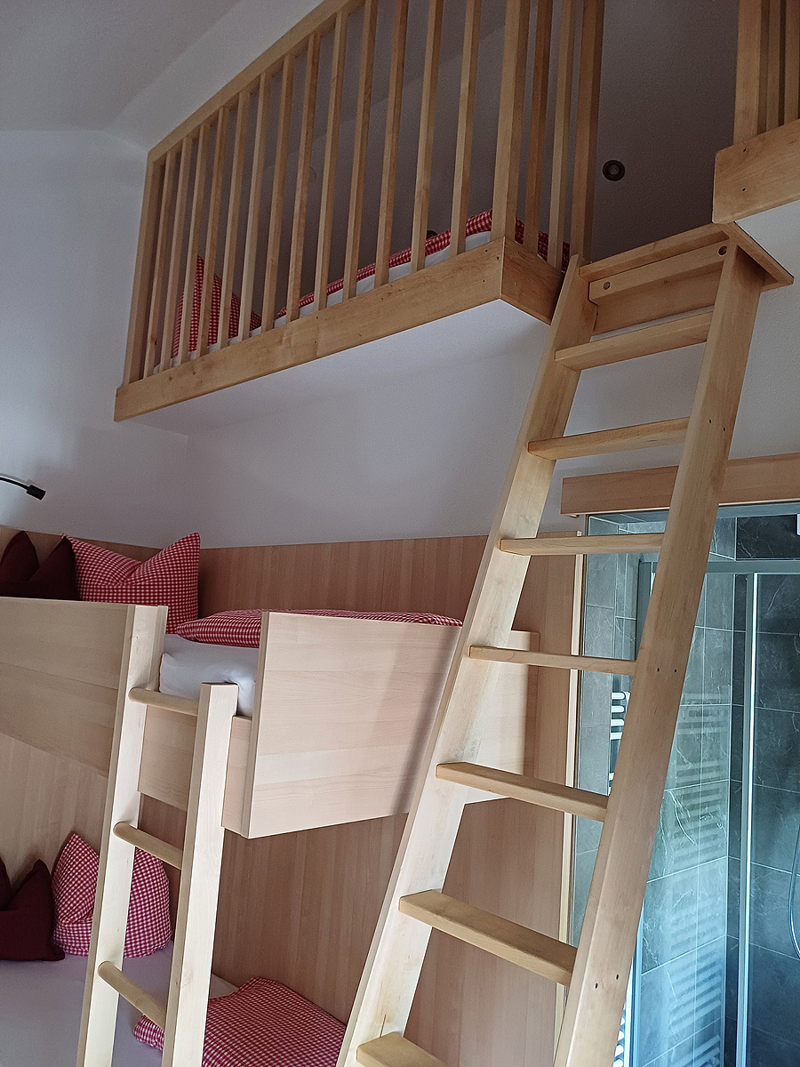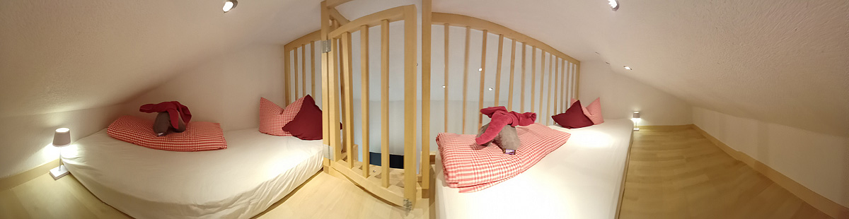 80 m² - 1 spálňa s manželskou posteľou, spálňa s poschodovou posteľou a neuzavretým poschodím (prístup po posuvných schodoch) s 2 prístelkami pre 2 deti do nedovŕšených 13 rokov, samostatná kuchynka, 2x sociálne zariadenie; byt sa nachádza v podkroví domu
