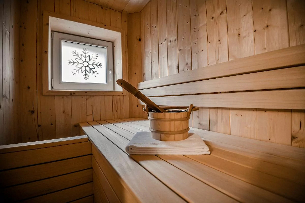 115 m² - 1. podlažie chaletu: obývacia izba s kuchynským kútom a gaučom, úschovňa lyží a lyžiarskych topánok, samostatné WC, terasa; 2. podlažie chaletu: 4 spálne s manželskou posteľou, 3x sociálne zariadenie (2x so sprchou a 1x s vaňou a privátnou infrasaunou či fínskou saunou), 2x balkón