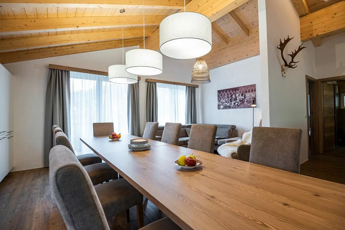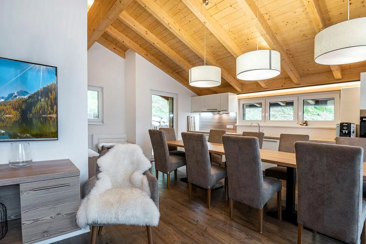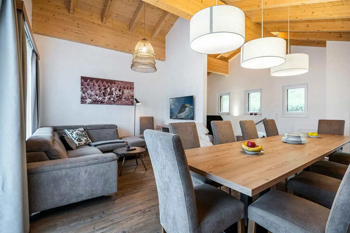 115 m² - 1. podlažie chaletu: obývacia izba s kuchynským kútom a gaučom, úschovňa lyží a lyžiarskych topánok, samostatné WC, terasa; 2. podlažie chaletu: 4 spálne s manželskou posteľou, 3x sociálne zariadenie (2x so sprchou a 1x vaňou a privátnou infrasaunou), 2x balkón; chalet má vlastné podzemné parkovanie pre 2 autá priamo pod chaletom