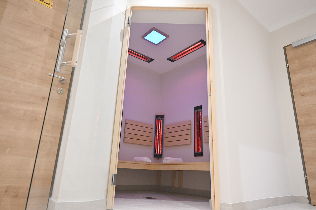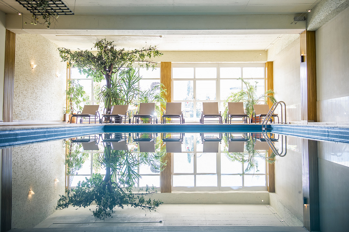 bazén 12 x 6 m, fínska sauna#, bio sauna#, para#, caldarium#, Kneippov chodník#, infrakabína#, relaxačný kútik s ležadlami#, masáže*, posilňovňa, stolný futbal*, služby označené # sú pre deti prístupné až od 14 rokov