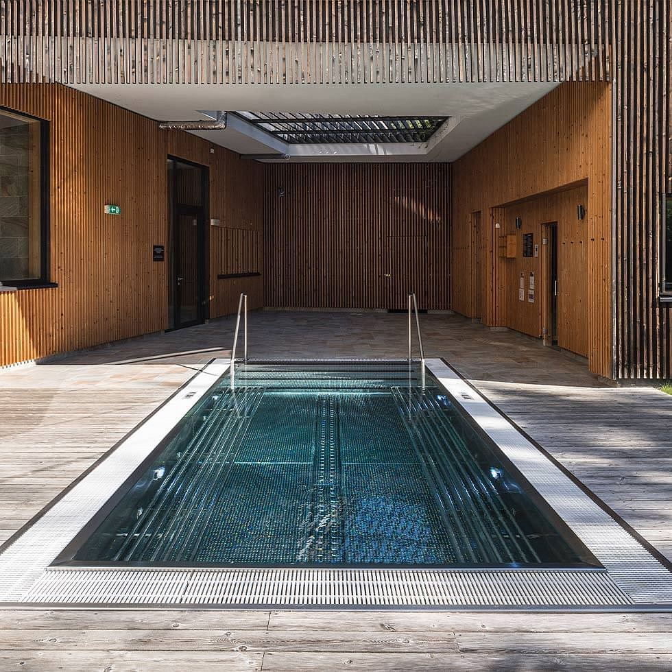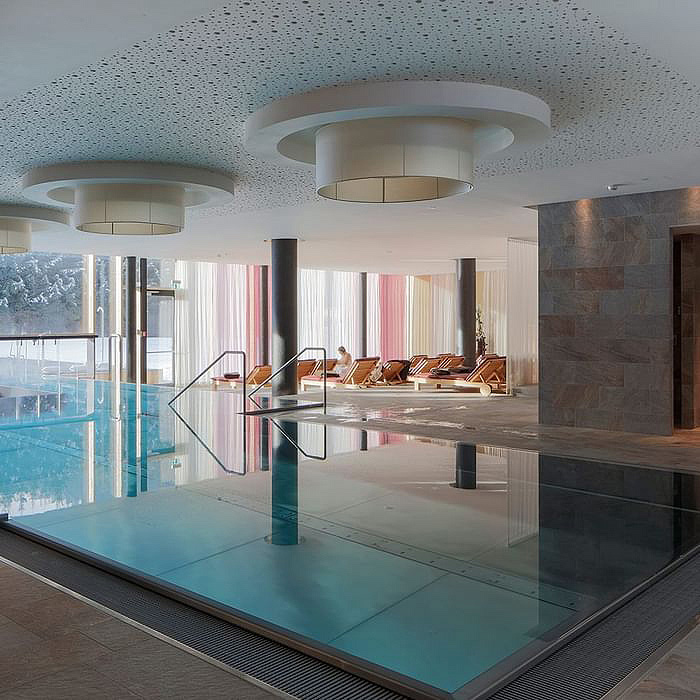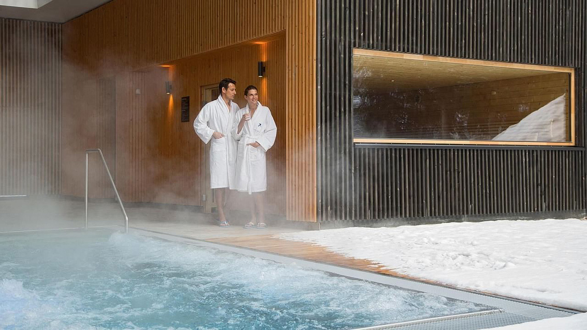 Acquapura SPA s veľkosťou 1.500 m² - bazén 11 x 5 m s masážnymi vodnými lôžkami, vonkajší vyhrievaný bazén 10 x 5 m, vonkajšia vírivka, vonkajšia panoramatická sauna, fínska sauna, bio sauna, para, ľadový kúpeľ, ľadová fontána, relaxačný kútik s lehátkami, masáže*, kozmetické služby*, veľká posilňovňa s cardio zónou, sála na jógu
