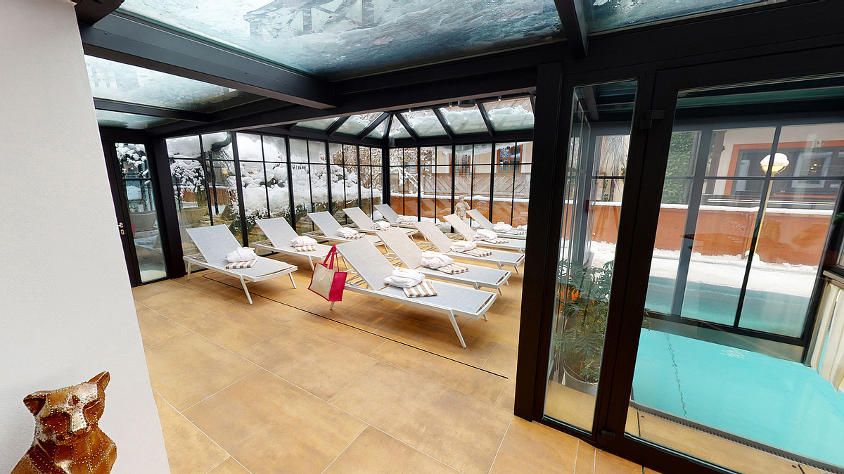 • eleganté v rímskom štýle zariadené wellness vrátane vonkajšieho vyhrievaného bazéna