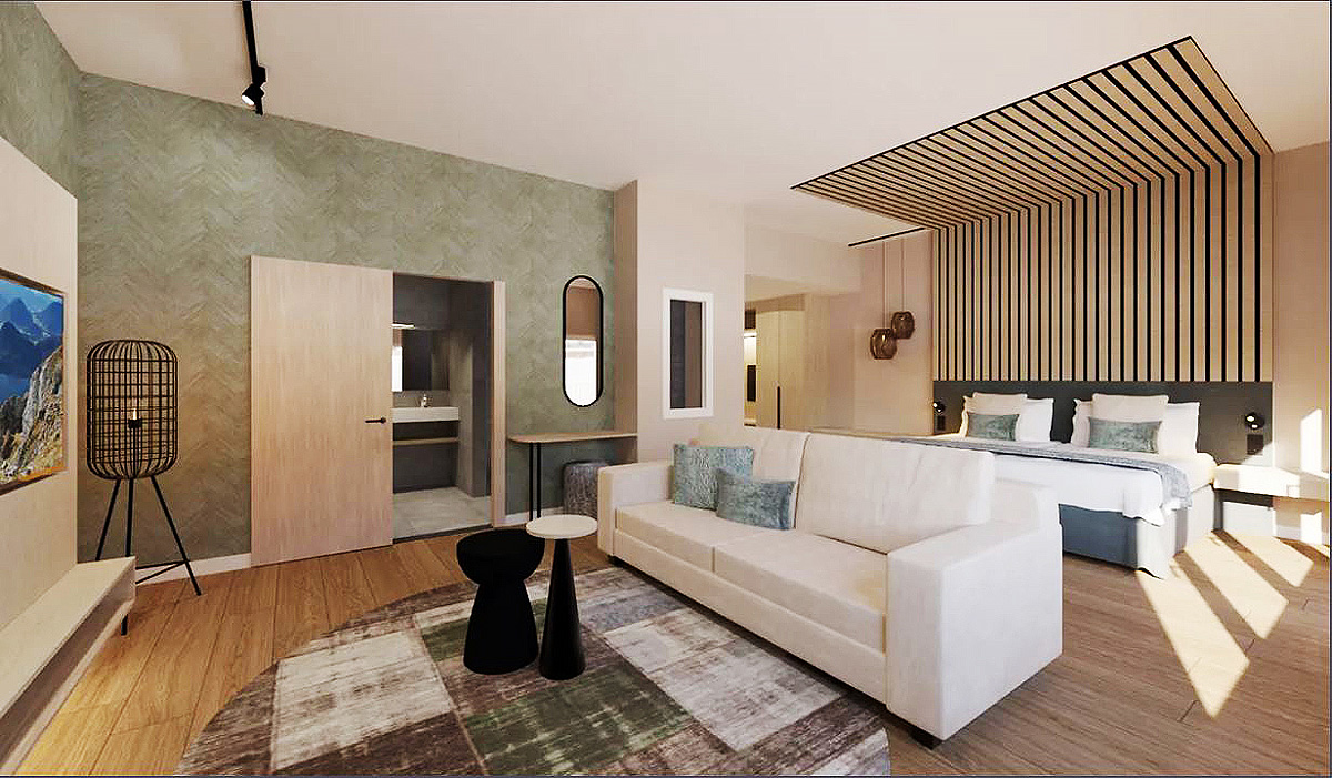 43 až 58 m² - 1 izba s manželskou posteľou a rozkladacím gaučom či 2 navzájom prepojené izby s manželskou posteľou a možnosťou rozkladacieho gauča pre 1 dieťa do nedovŕšených 18 rokov, 1 až 2x sociálne zariadenia, spravidla oddelené WC, balkón; izby sú po novom zrekonštruované; minimálna obsadenosť izby sú 2 dospelé osoby a 1 dieťa od 2 rokov
