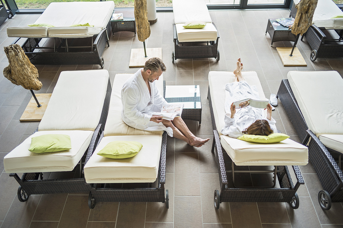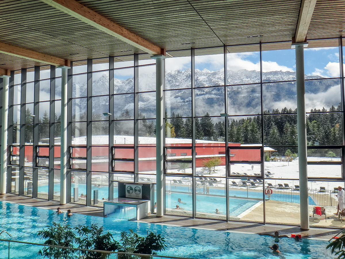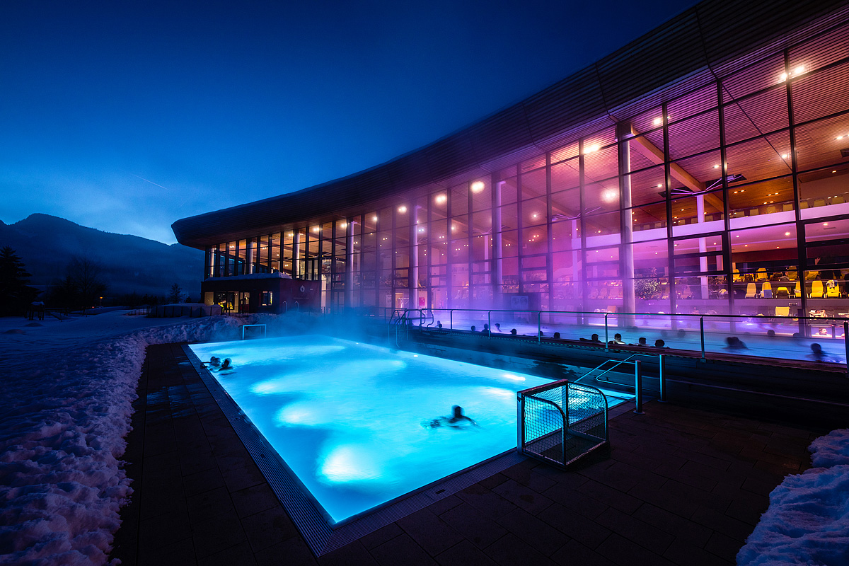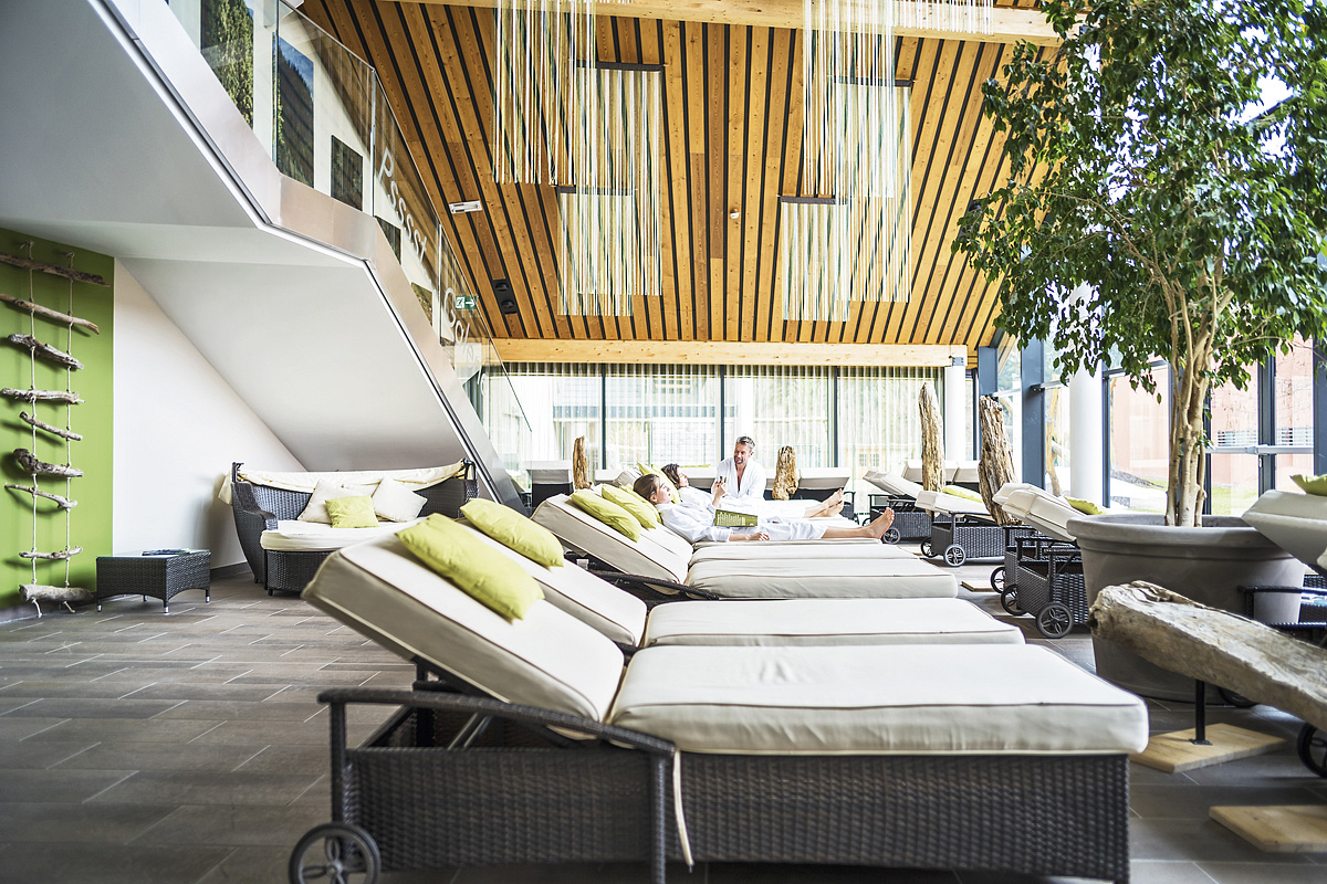 zadarmo neobmedzený vstup do Grimming Therme (prepojený s hotelom podzemnou chodbou), 3x bazén, 4x vonkajší vyhrievaný bazén s termálnou vodou, detský bazén s tobogánom, detské brodisko, saunový svet# (6x vnútorná sauna, 3x vonkajšia sauna vrátane pravidelných rituálov, oddelená sauna pre ženy), relaxačné priestory na 5 poschodiach s lehátkami, masáže*, kozmetické služby*, posilňovňa, sála pre aerobic s programom; služby označené # sú deťom prístupné až od 16 rokov