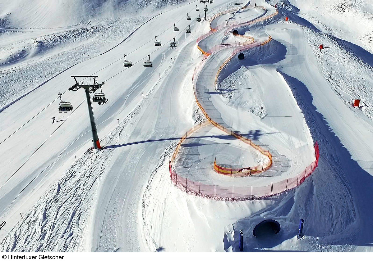 Hintertux, kráľ medzi ľadovcami, je vyhľadávaný k tréningu mnohých lyžiarskych reprezentačných tímov, je to jediné rakúske zimné stredisko s celoročnou lyžiarskou prevádzkou. Táto ríša večného snehu sa nachádza medzi trojtisícovkami na konci Tuxského údolia s dominantným vrcholom Olperer, a ponúka na 60 km zjazdoviek vo výškach až do 3 250 m n. m. obsluhovaných najmä rýchlymi kabínami lanovky Gletscherbus.